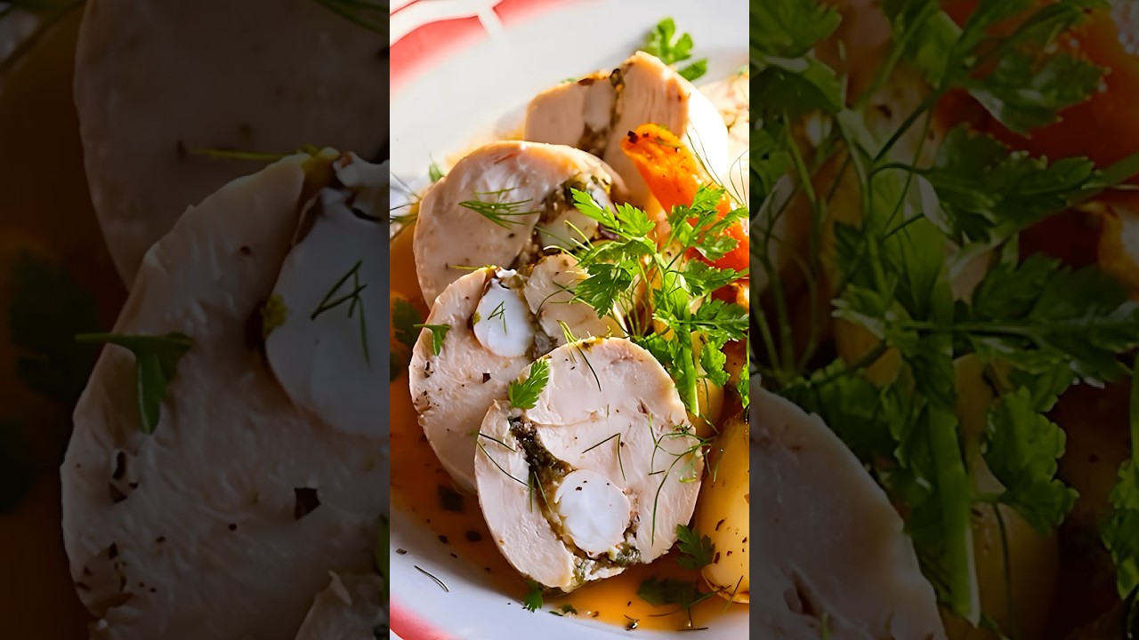 📌 Faites cuire les rouleaux de poulet 10 min à la vapeur juste avant le service. Faites chauffer le fumet. Ajoutez progressivement 100 g de beurre en petits morceaux en fouettant. Réchauffez les légumes. Retirez le film autour des rouleaux de poulet et taillez-les en tranches. Nappez de sauce. Garnissez des légumes et servez bien chaud.