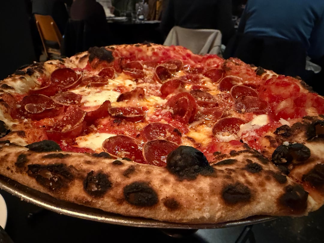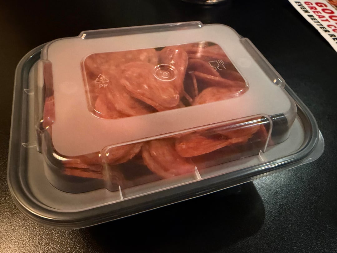 I want to thank this sub. In addition to y’all being supportive of my home pizza-making efforts when I occasionally post pics here, I also saw someone post here semi-recently that they had success hitting up their local pizzeria to buy small batches of Ezzo pepperoni. Last night at a local Italian place that specifically serves an Ezzo pepperoni pizza (yes they call it out on the menu, it’s in pic 2), I very politely asked our server at the end of our meal, and she came back with a small takeaway container of them! They charged me $15 so it’s not as if I got a screamin’ deal, but this should be enough for a few pizzas in my Ooni. Thank you to this sub for giving me the idea to politely ask.