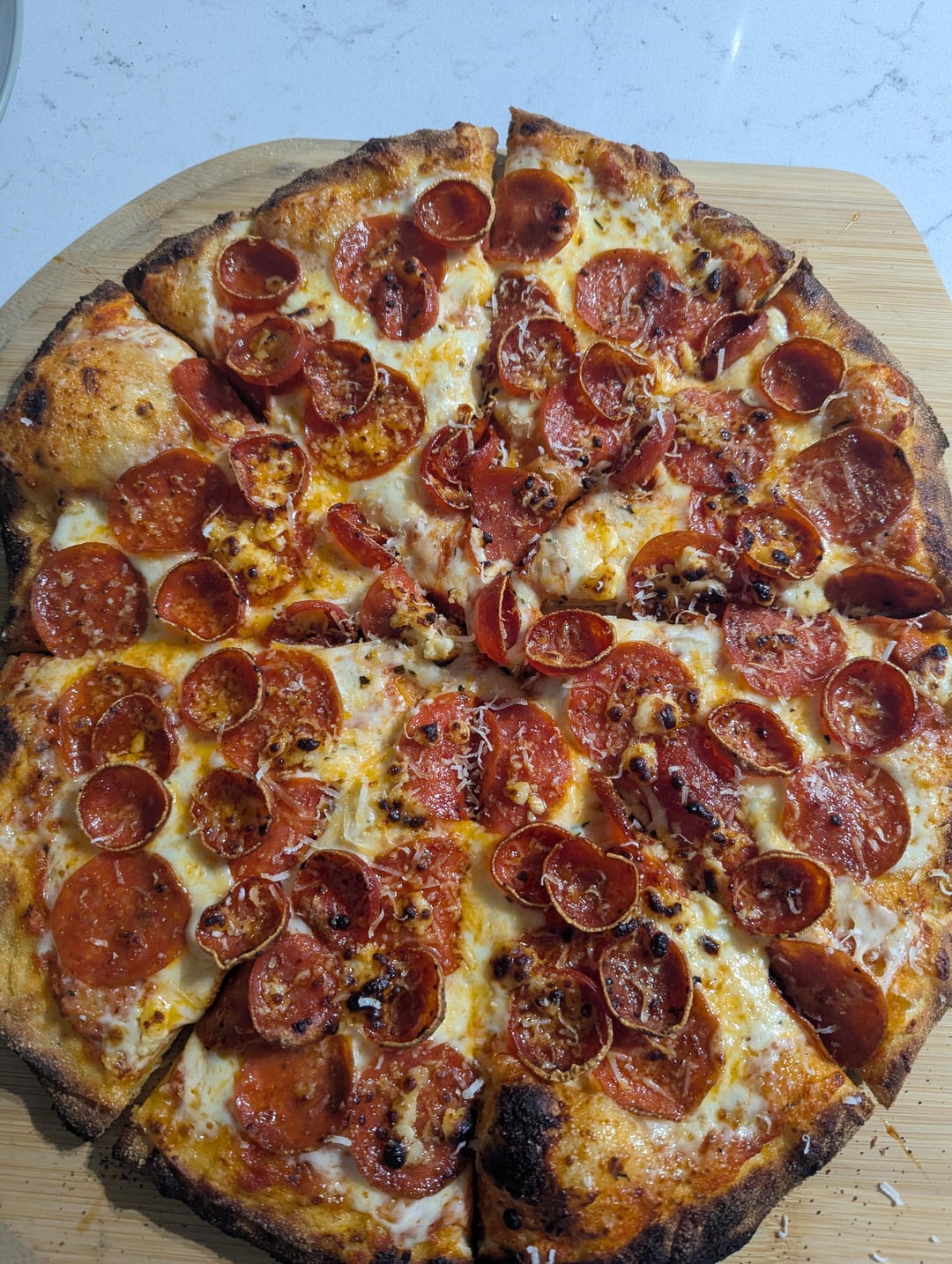 Same day dough cooked in an Arc XL at 735°465g 00 King Arthur flour 64% hydration (warm water & apple juice) Regular pepperoni + cup and crisp Supremo whole milk mozzarella Feta & Parmigiano reggianoby Nuggs4Lyfe outdoor ovenpizzaWrite A CommentYou must be logged in to post a comment.