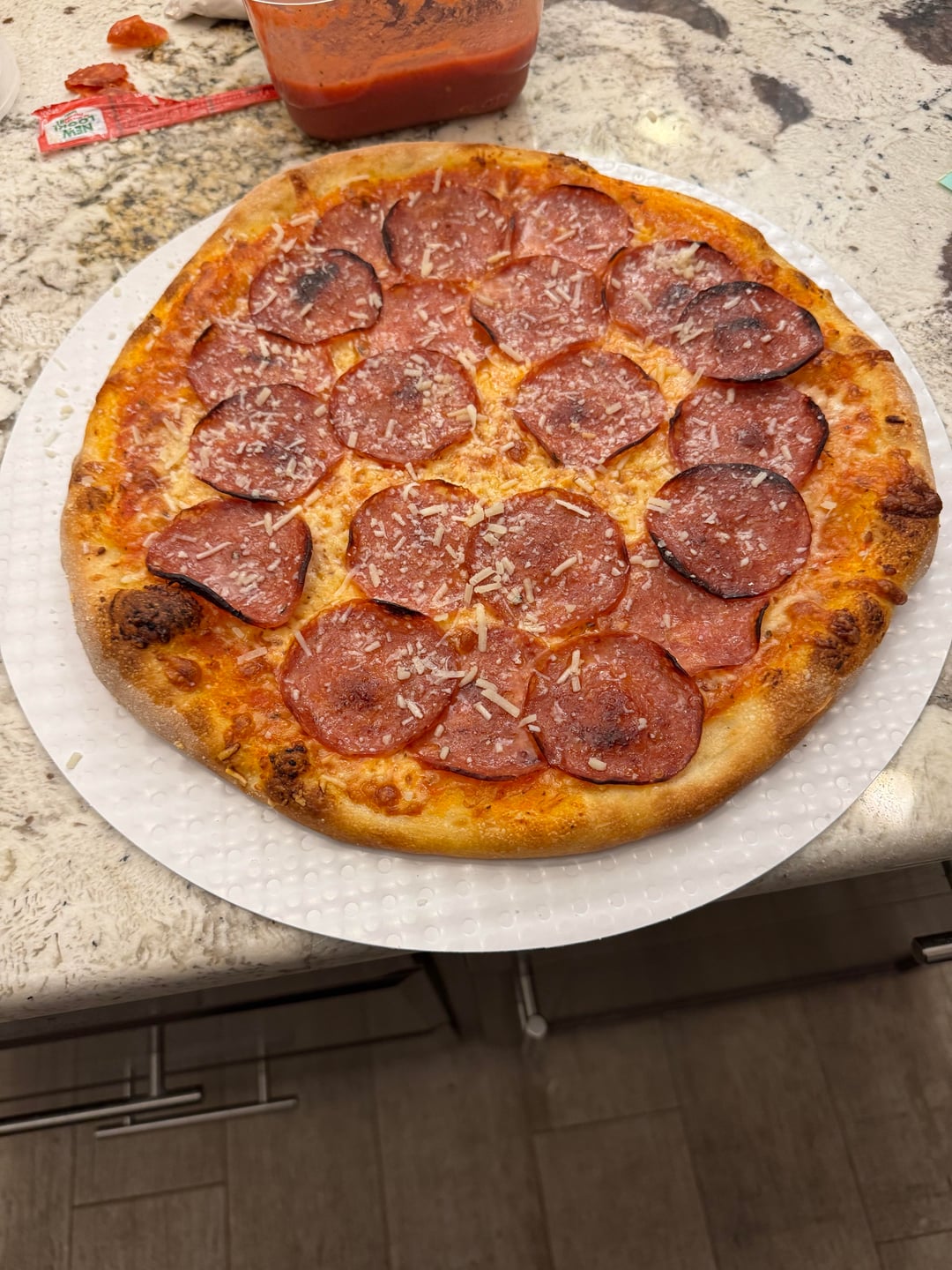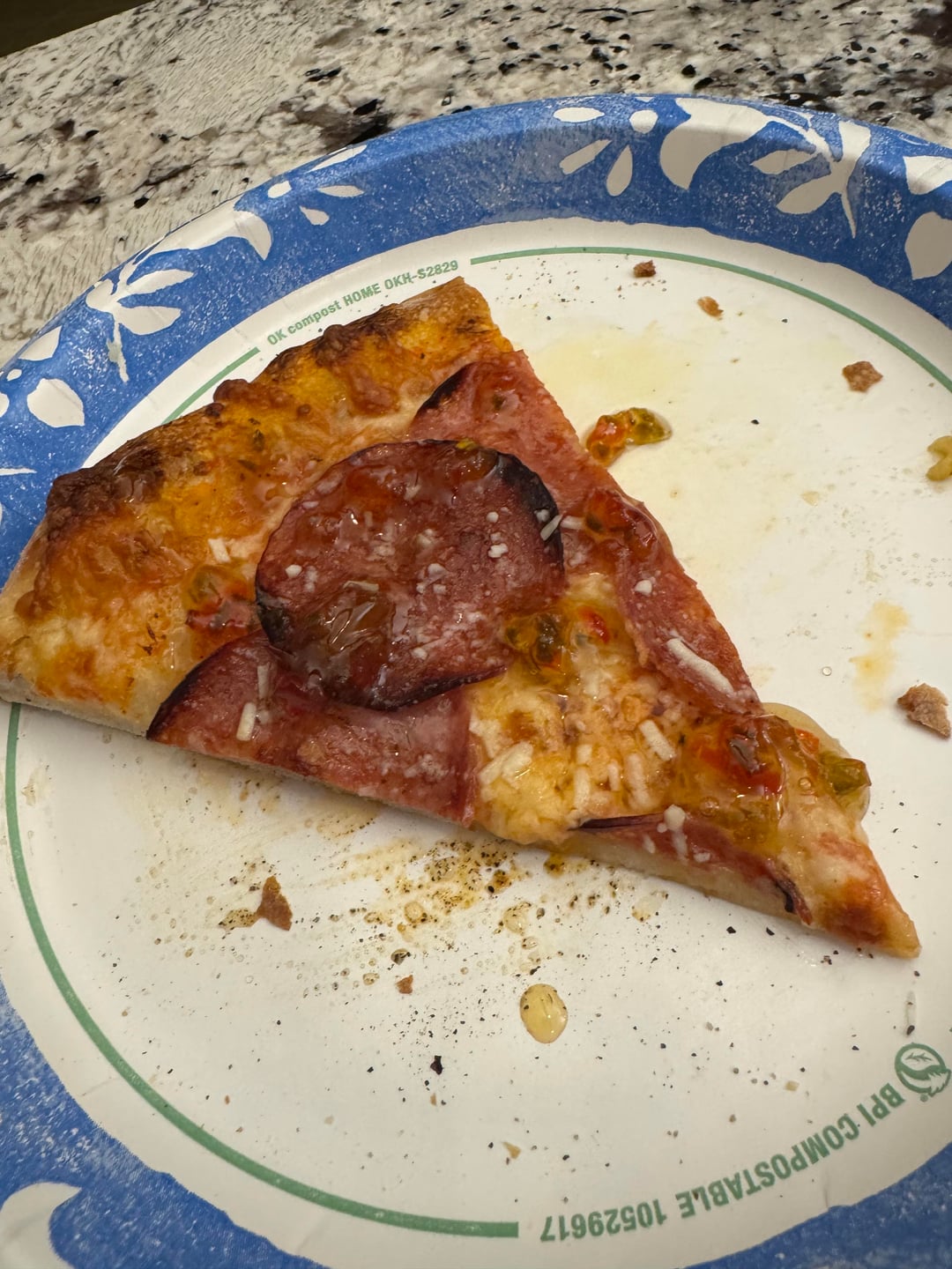 Pies were Cheese, pepperoni, Mac and cheese, and then a Genoa & Calabrese that I put some jalapeño jam on.