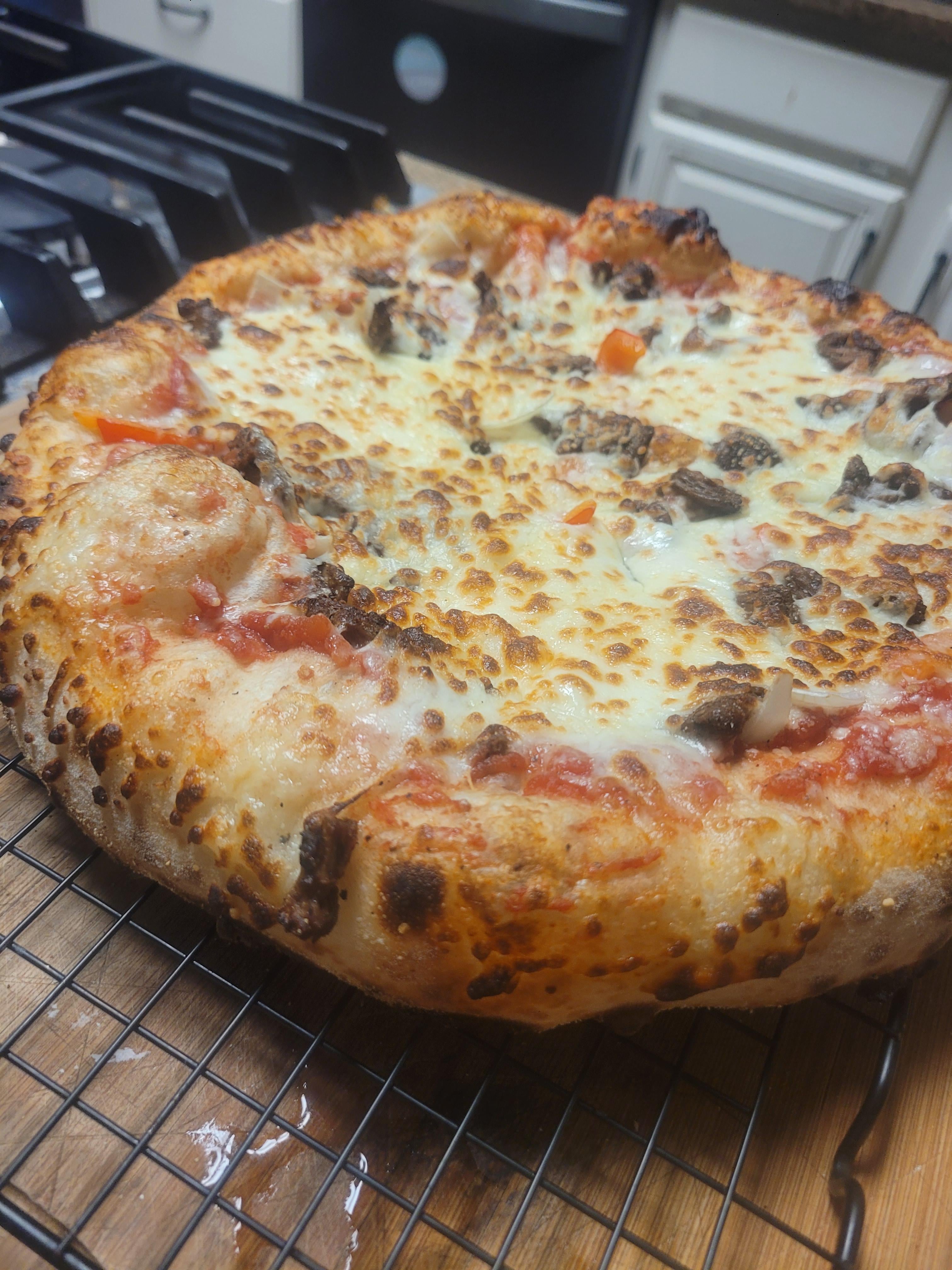 The crust, sauce, and cheese are exactly to my liking. This one has red peppers, onions, and vegetarian steak tips (I am vegetarian).What are some of your favorite toppings combos?by Oakens_Trading_Post outdoor ovenpizzaWrite A CommentYou must be logged in to post a comment.