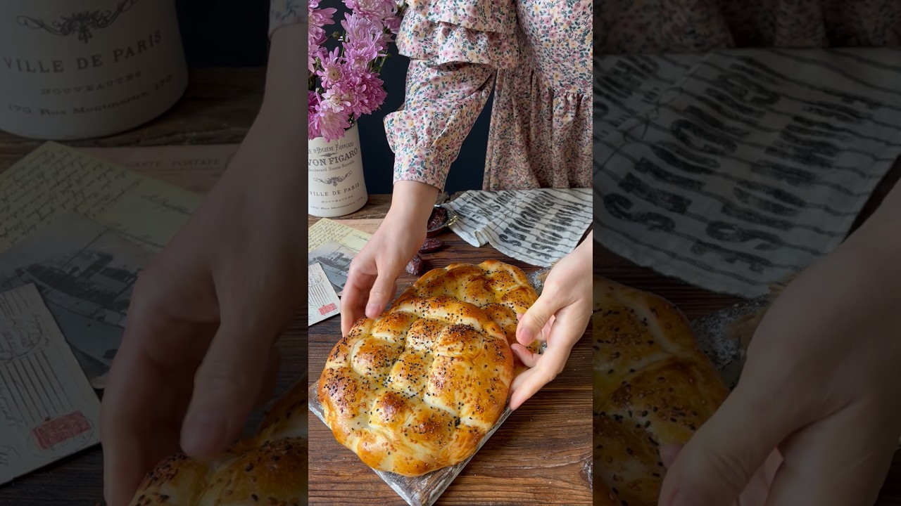 Unu yoğurma kabının içine alın , ortasını havuz gibi yapın. Ortasına diğer malzemelerin hepsini ekleyip yoğurmaya başlayın. Hamur güzel bir yapı alınca yağlanmış kapaklı kaba aktarın. 40 dakika kadar mayalandırın. Dinlenen hamuru tekrar tezgaha alıp portakal büyüklüğünde pürüzsüz 3 beze yapın. Bezelerin üzerini bir örtü veya streçle kapatıp yaklaşık 1 saat dinlendirin. İyice kabaran bezelerin her birini alıp elle çok inceltmeden tabak büyüklüğünde açın. Bir cetvel, bıçağın tersi ya da oklava ile bastırarak baklava deseninde çizgiler yapın. Üzerine yumurta sarısı sürüp çörekotu ya da susam serpin. Önceden ısıtılmış 180 derece fırında nar gibi kızarana kadar pişirin.