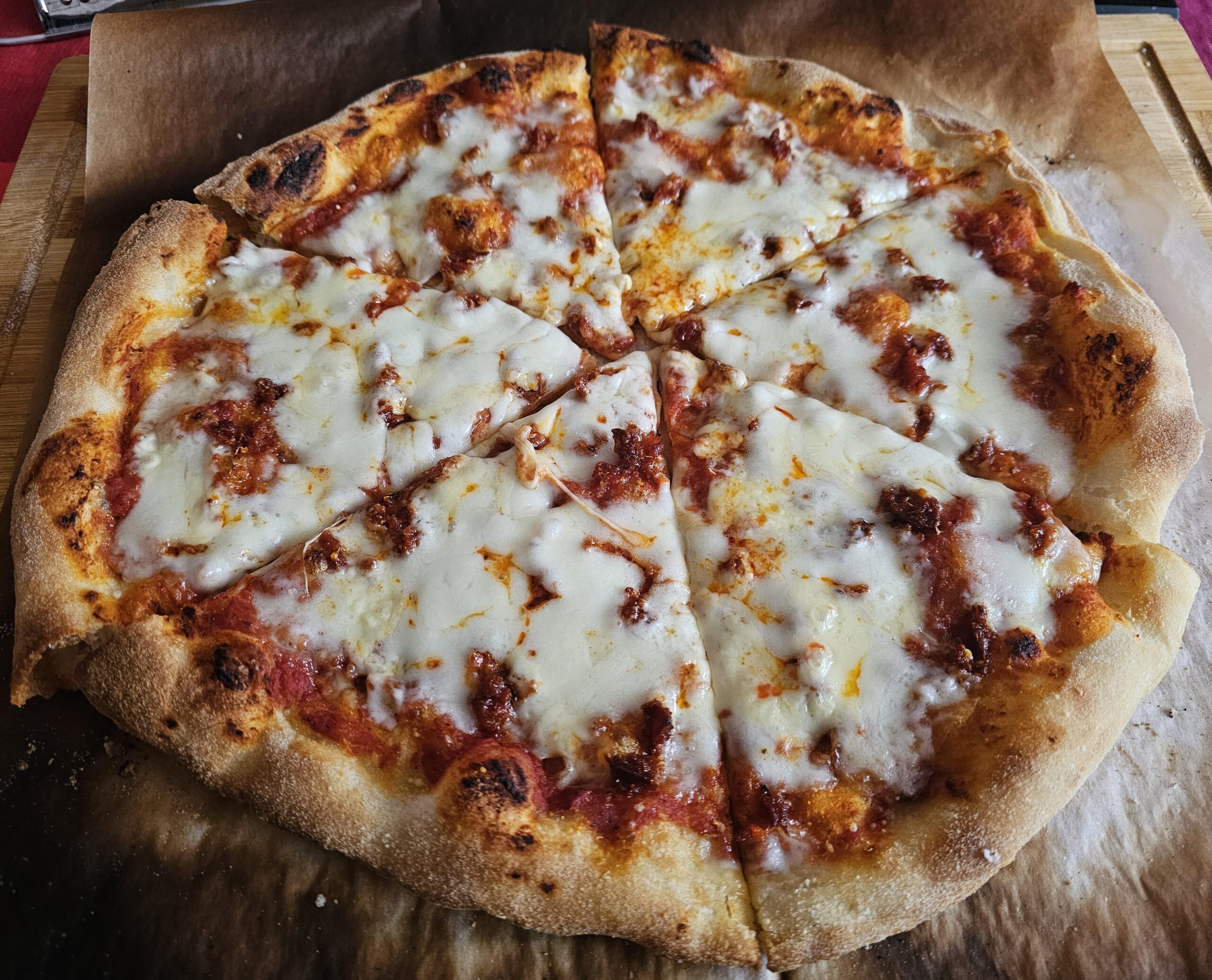 I’m usually a browned cheese fan, but that mozz looks absolutely delicious. Nice job on the dough and bake too. I’d pay for that pie