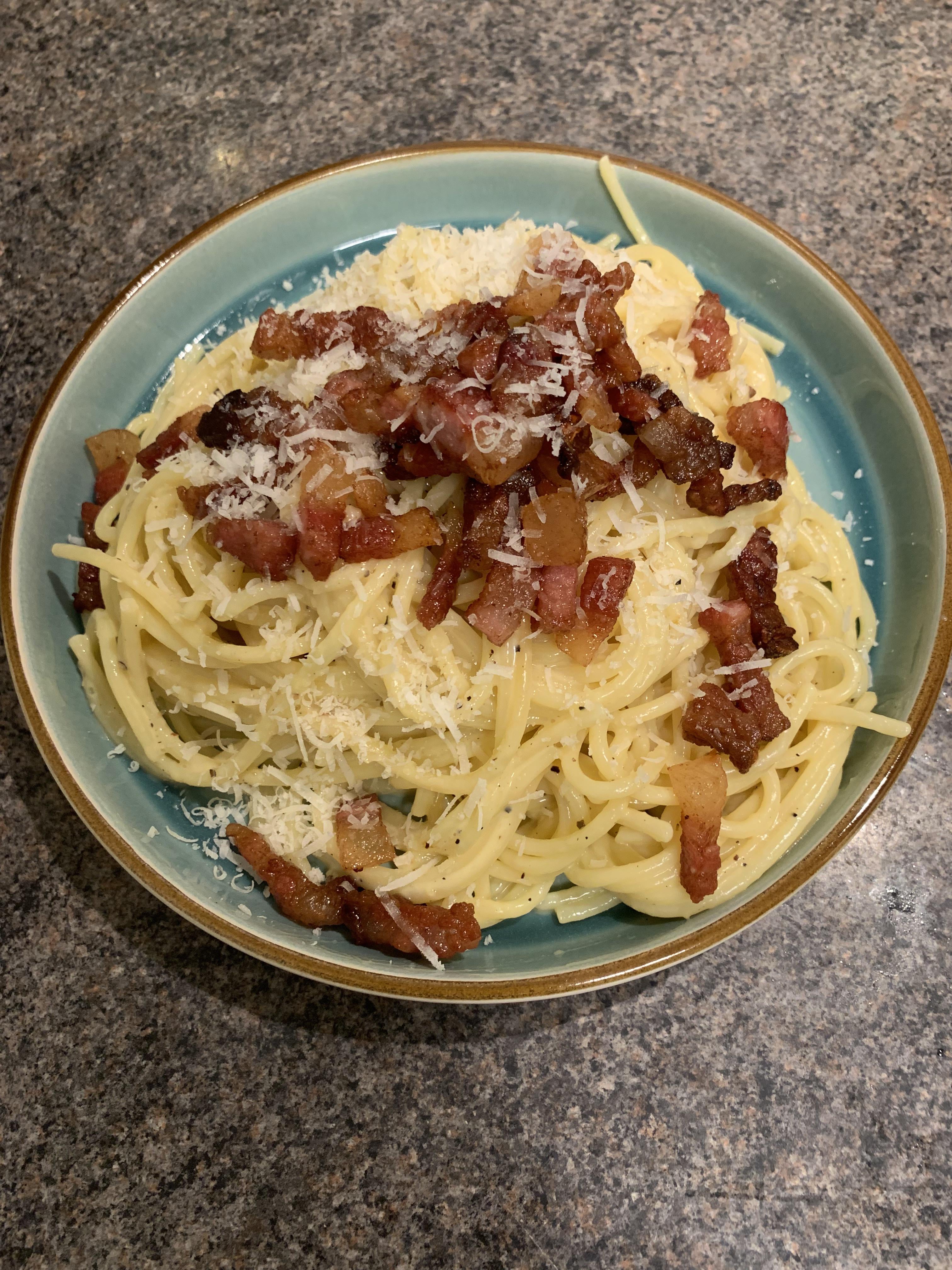 PecorinoGuanciale3 egg yolks250g SpaghettiPepperLooks ok?Tasted good!First time using guanciale and definitely tasted better than bacon or pancetta.by CaptainCatamaran Homemade DishPastaWrite A CommentYou must be logged in to post a comment.