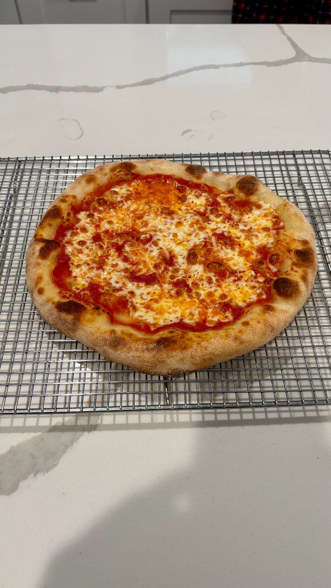 67.5% hydration, 72 hour cold fermentationTopped with San Marzano tomatoes, whole milk mozz, and Calabrian chili oilBaked on a cast iron pizza pan at 550° F for 7 minutes by f_cinergytraining NORMAL OVENpizzaWrite A CommentYou must be logged in to post a comment.