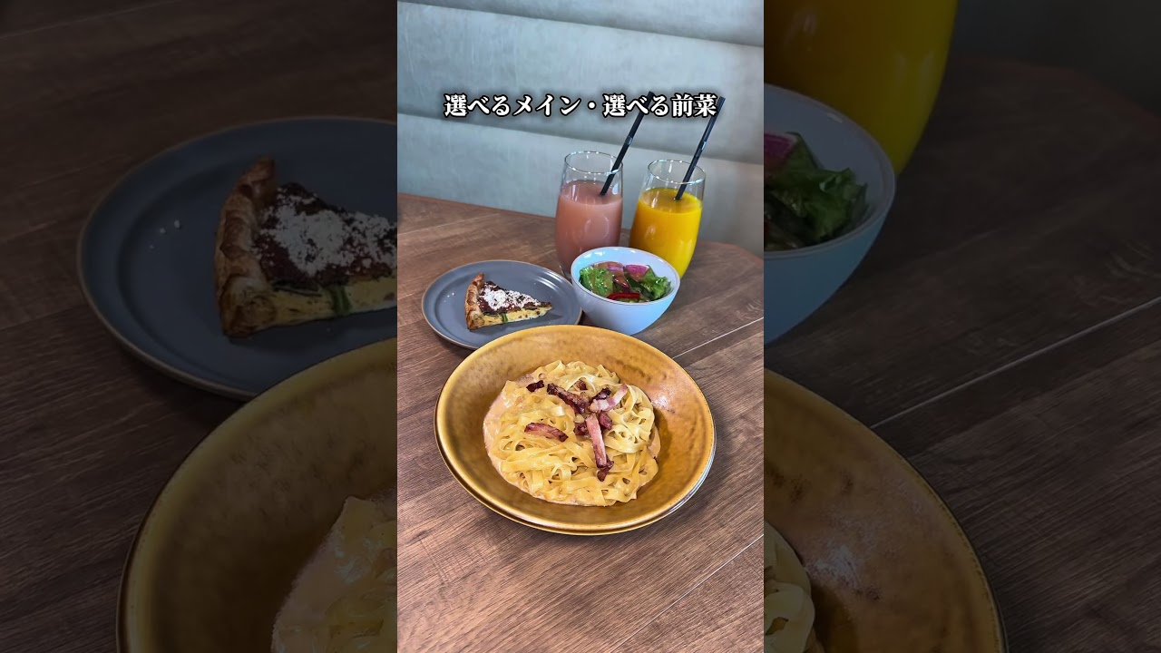 窯焼きピッツァ・生パスタ・リゾットからメインを選べて、前菜+プレミアムドリンクバー付きと満足度抜群💯