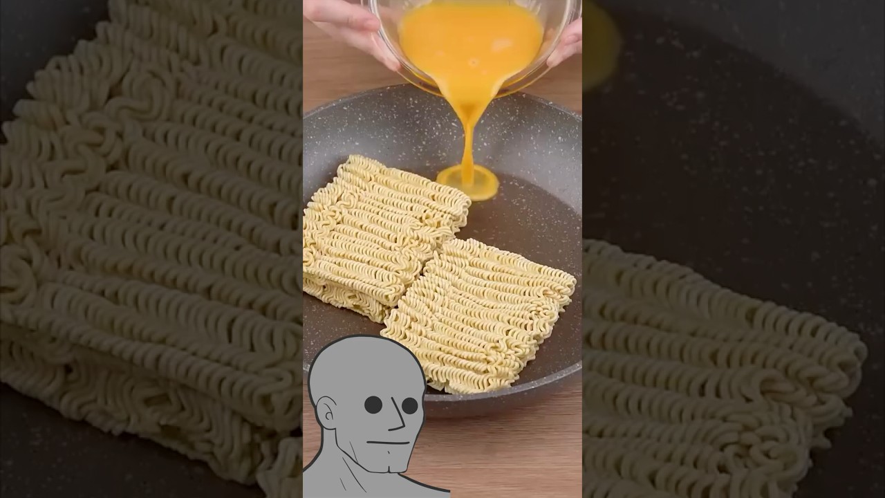 Яичница с "роллтоном"? Мы давно так делаем, только сначала завариваем лапшу, очень вкусно получается. Сверху ещё слегка запаренне яйца кладу, чтобы желток вытекал, мммм