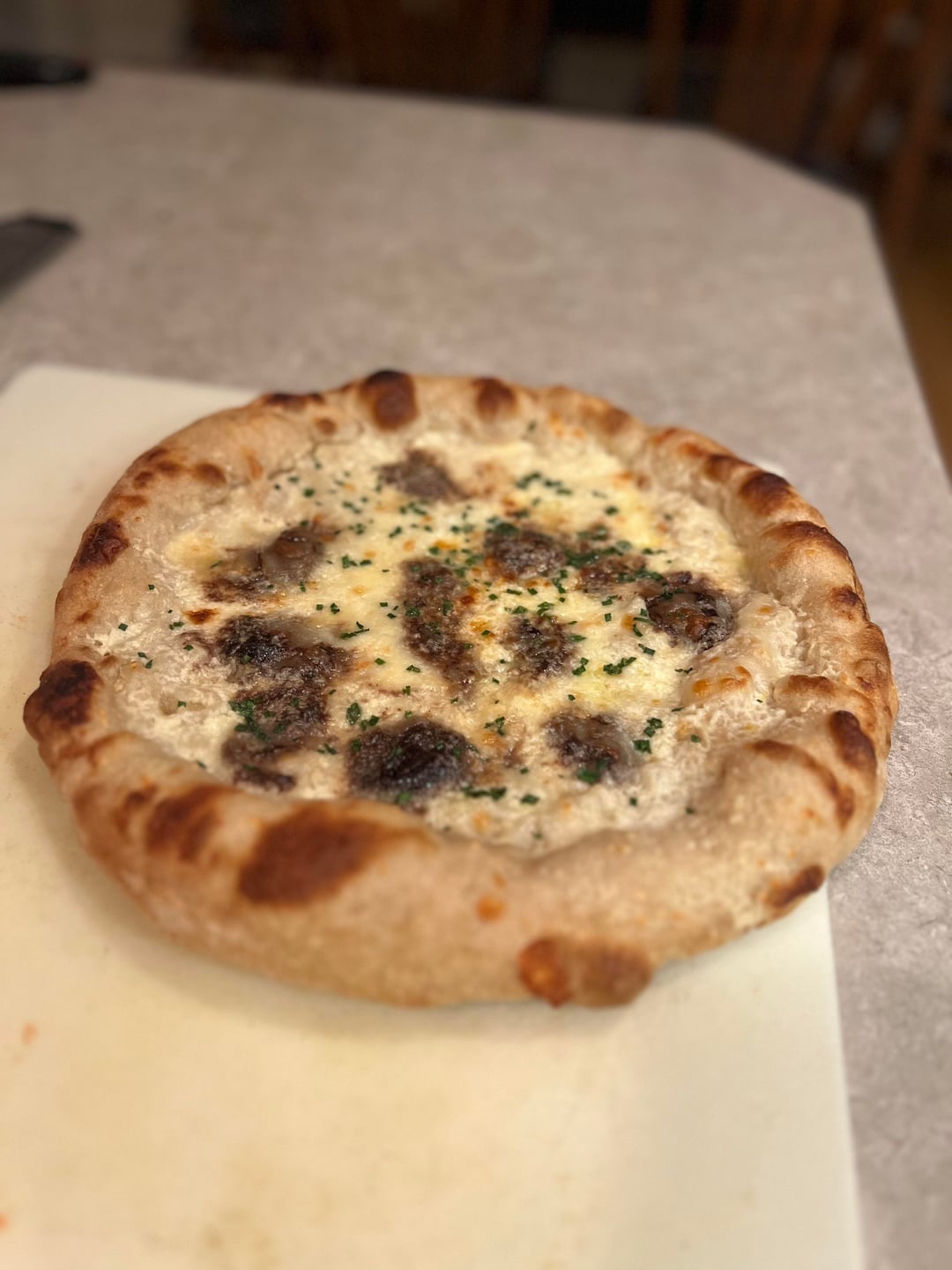Pizza looks yummy but that is absolutely not neapolitan style lol.