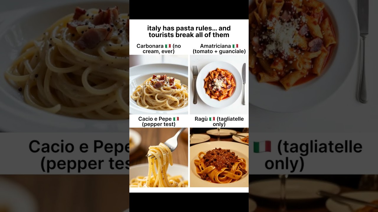 ordering pasta in italy is basically a test. carbonara without cream, ragu only on tagliatelle… break the rules and the waiter knows. Menu Translator App helps before you embarrass yourself #italy #pasta #travelfood #foodabroad #menutranslator cookingcuisineitalianItalian Cookingitalian cuisineItalyItaly CookingItaly CuisinevideoVlog 1 Comment @feliciafischerster 7 days ago How are the tourists breaking the rules if the ones cooking are the Italian chefs?Write A CommentYou must be logged in to post a comment.