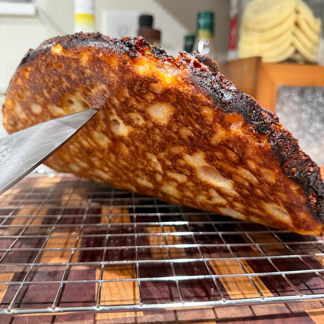 Wow. And also sourdough. Looks great. Perfect browning and undercarriage. I like the thickness as well. Easy to pick up.