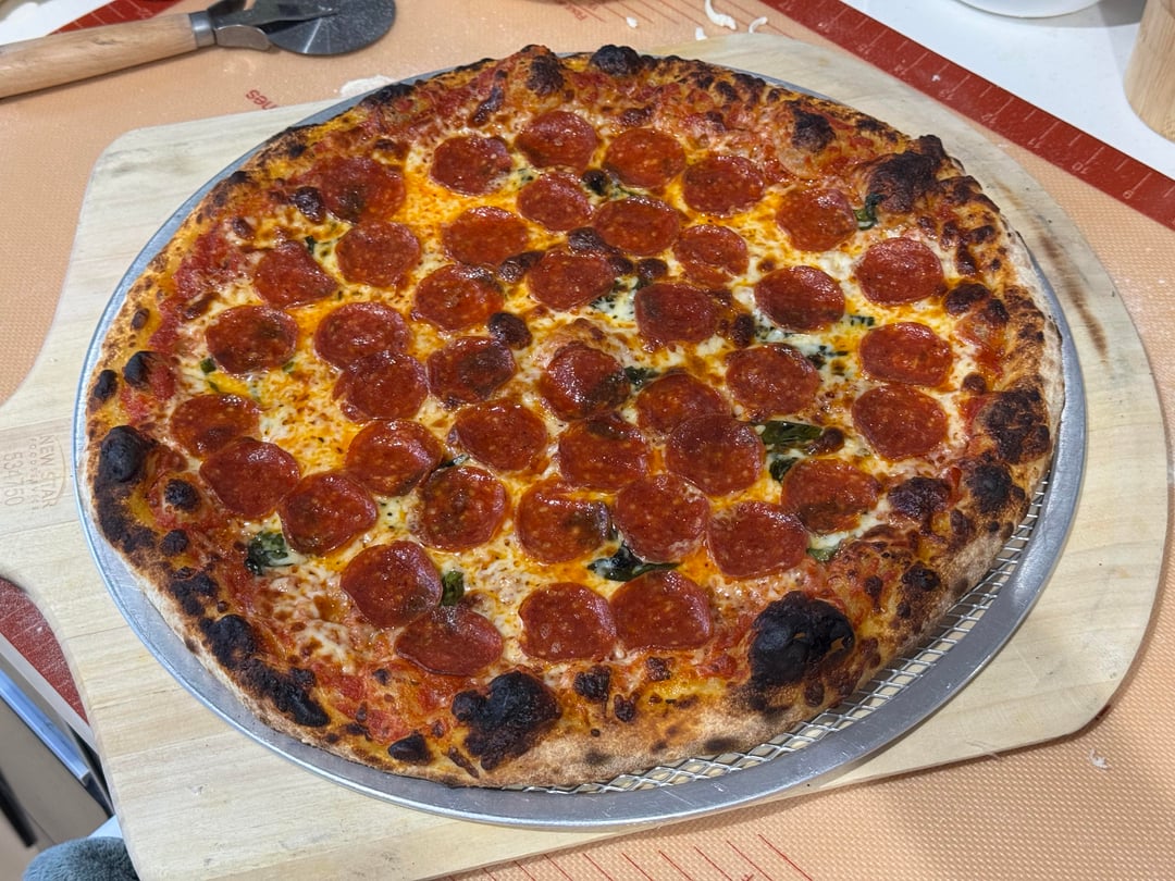 64% hydration – high gluten bread flour, 3 day cold ferment.2 16” pizzas cooked in my Ooni Koda 16. First is pepperoni with basil under the cheese, second is bbq chicken. Been really happy with my dough lately.by gladvillain outdoor ovenpizzaWrite A CommentYou must be logged in to post a comment.