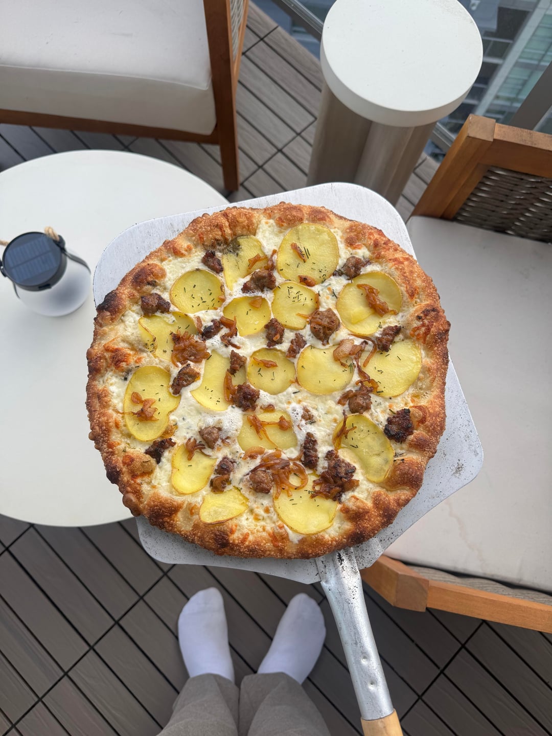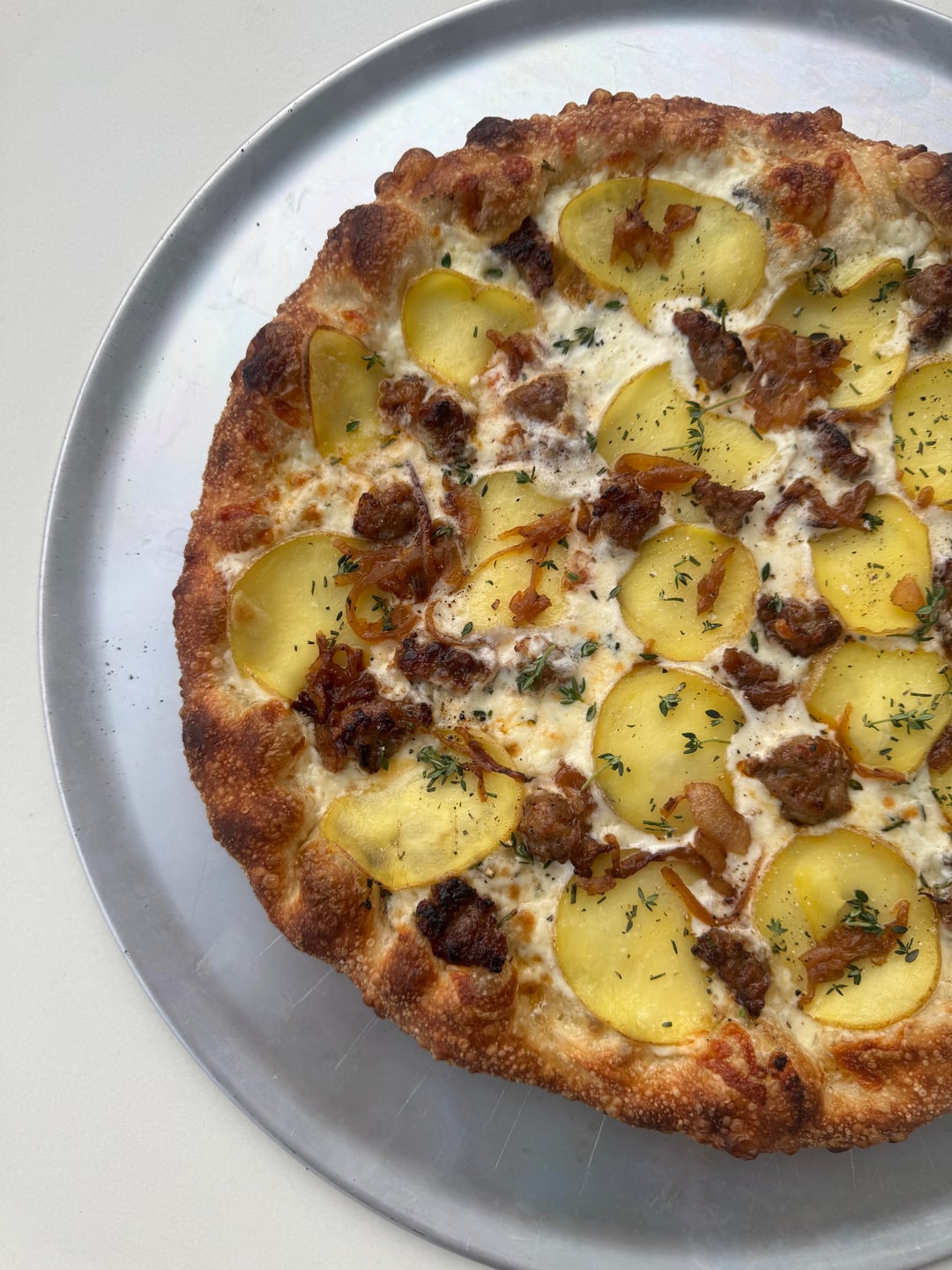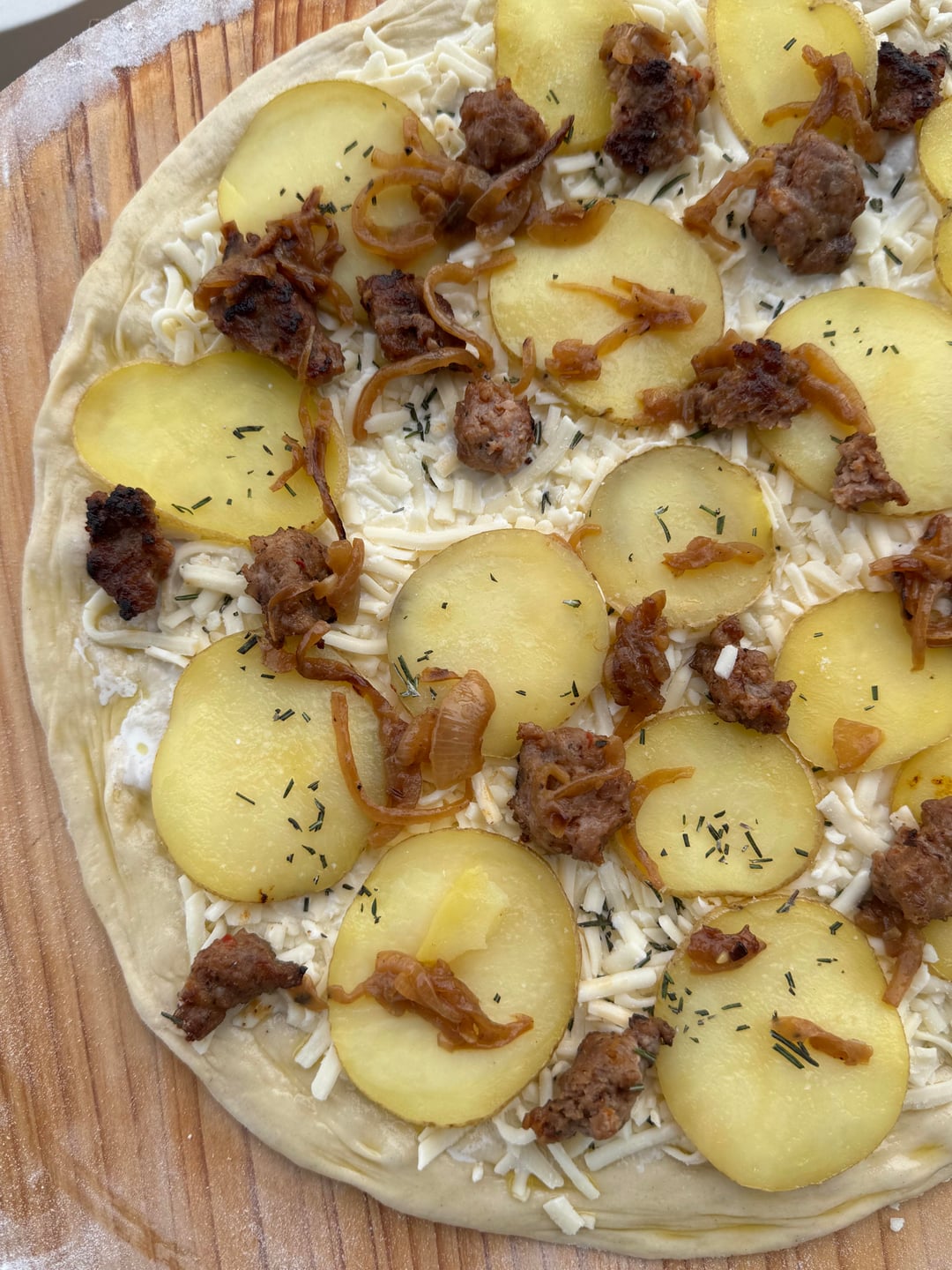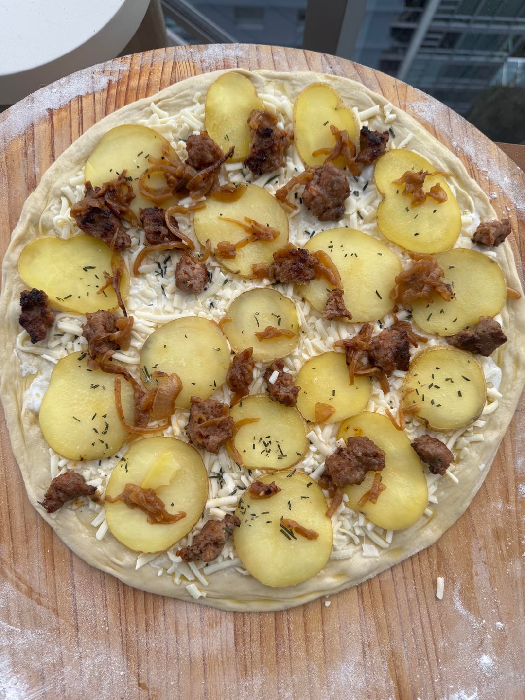 Soubise, mozza, Gruyère, Yukon gold, Caramelised nook , Italian sausage, rosemary, thyme68% hydration 72 hoursby Advanced_Giraffe_424 outdoor ovenpizzaWrite A CommentYou must be logged in to post a comment.