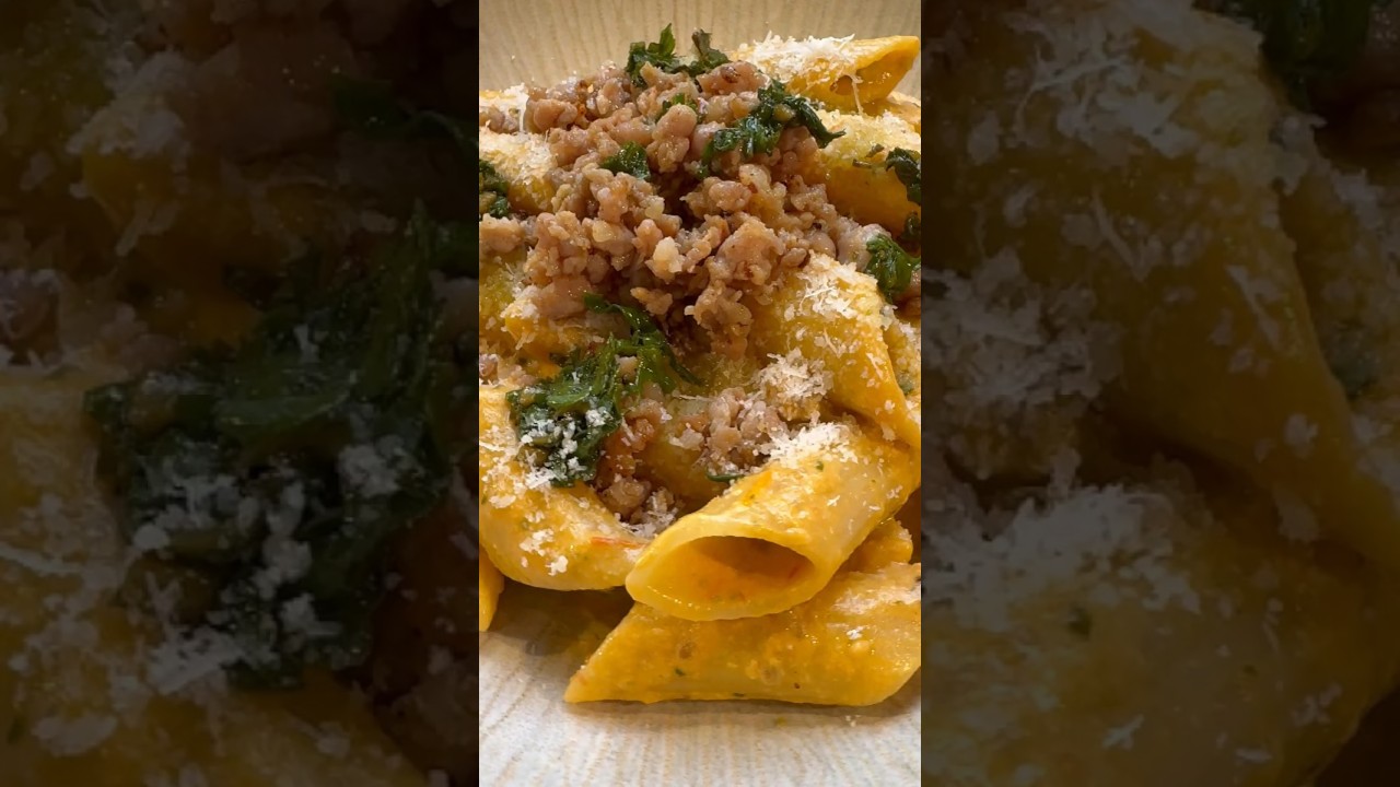 Ingrédients 400 g de pennoni ou penne rigate 2 grosses saucisses italiennes 400g de tomates cerises 1 burrata de 200g 3 gousses d’ail 10 grandes feuilles de basilic 60g de Pecorino romano Huile d’olives Sel et poivre