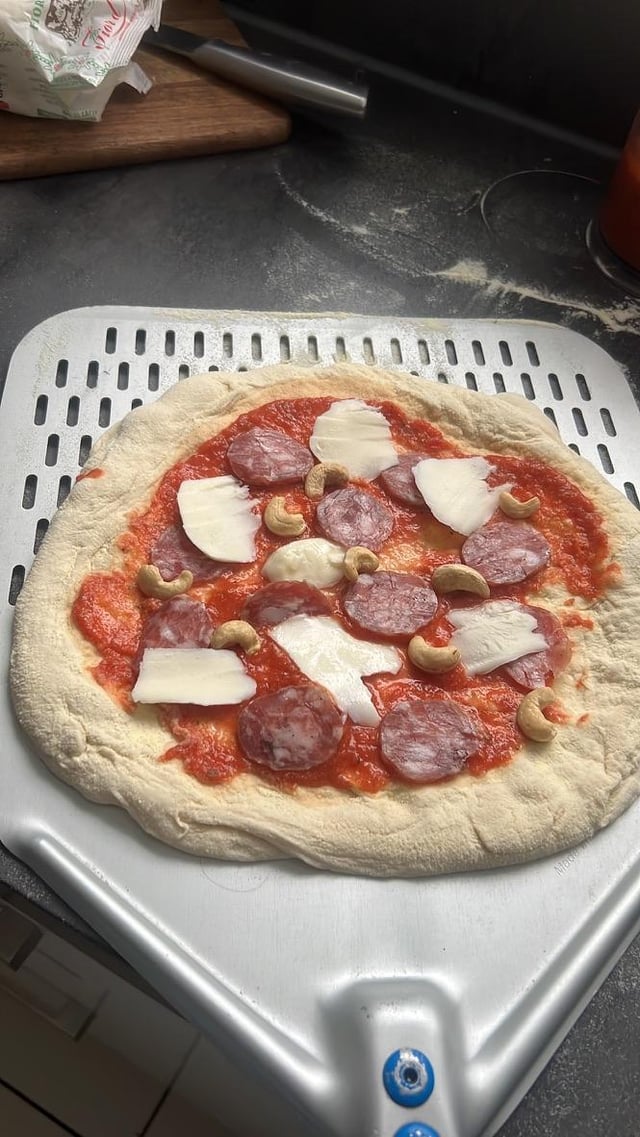 The cashews look pretty random but the pizza looks hella good, would 100% smash. And I’m an OG Neapolitan