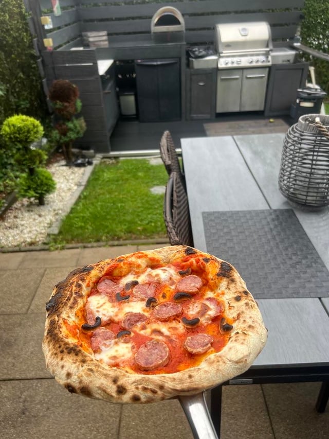 Backyard oven.