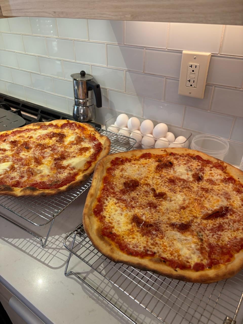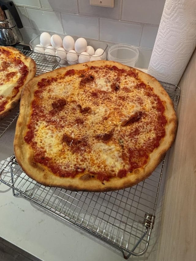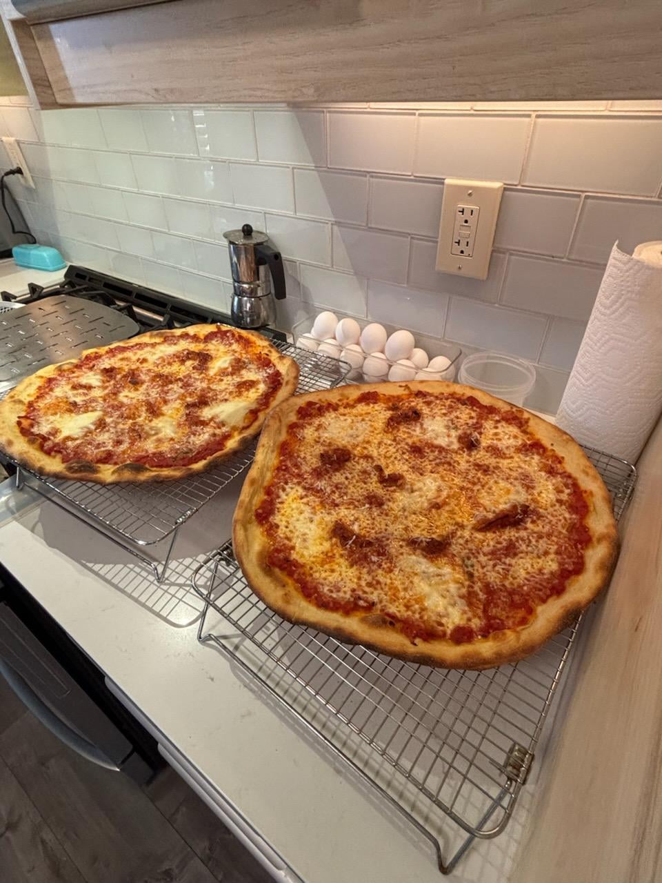 My best pizza yet. I lowered the hydration, which made the dough easier to manage when stretching. But the biggest game-changer for me was the use of a pizza screen. No longer did I have to worry about transferring it onto the peel, then stretching it, followed by launching it in the oven and trying not to mess up the shape.