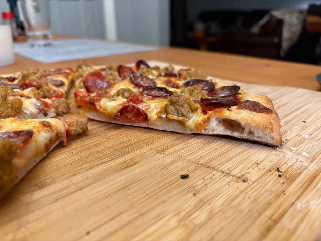 I really appreciate everyone’s input on my question about gluten free dough from a few days ago. Most people recommended using the recipe on the Caputo flour bag. I used the one from the website, which is identical except for the addition of a small amount of honey. I guess I’d call it a success, in that I fed my friends and they seemed really happy with it. The only gluten free pizza I’ve ever had are the ones I’ve made over the last five days, so I have no frame of reference for what counts as good. But I can see why people say it works best as a pan pizza, and maybe I’ll try that next time I need GF. Anyway, thanks for the help! Next up, my first experiment with biga!
