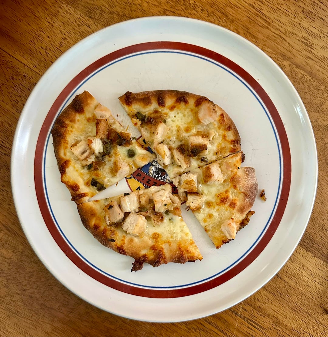 I’m getting addicted to this pizza making. Today I made this from last nights dinner leftovers. Mozzarella and chopped up chicken piccata no sauce. Single serving size.by dentalexaminer NORMAL OVENpizza 1 Comment Neltech 2 hours ago Salad on the sideWrite A CommentYou must be logged in to post a comment.