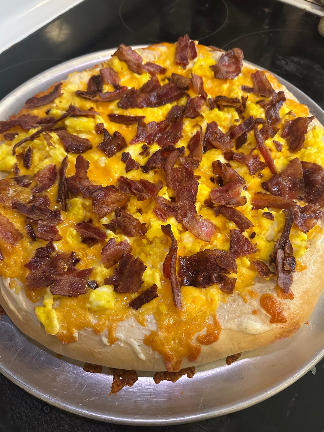 For the USA-Canada men’s hockey game that was at 8am yesterday. I wasn’t crazy about the cream cheese based sauce but it was still fire. Could’ve used some extra bacon lol. Dough wasn’t from scratchby BuffaloChicken22 NORMAL OVENpizza 1 Comment Proof_Economics8397 1 hour ago Breakfast pizza is so underrated…looks great!Write A CommentYou must be logged in to post a comment.