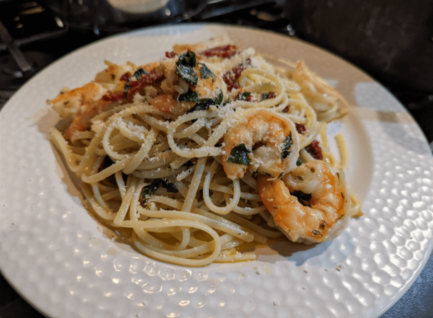 Linguine with garlic, oil and sundried tomatoes