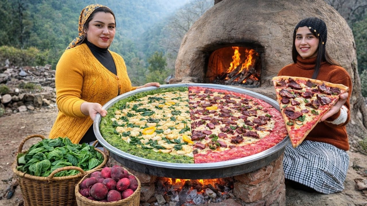 In this video, we are baking two giant pizzas in a traditional rural clay oven 🍕🔥