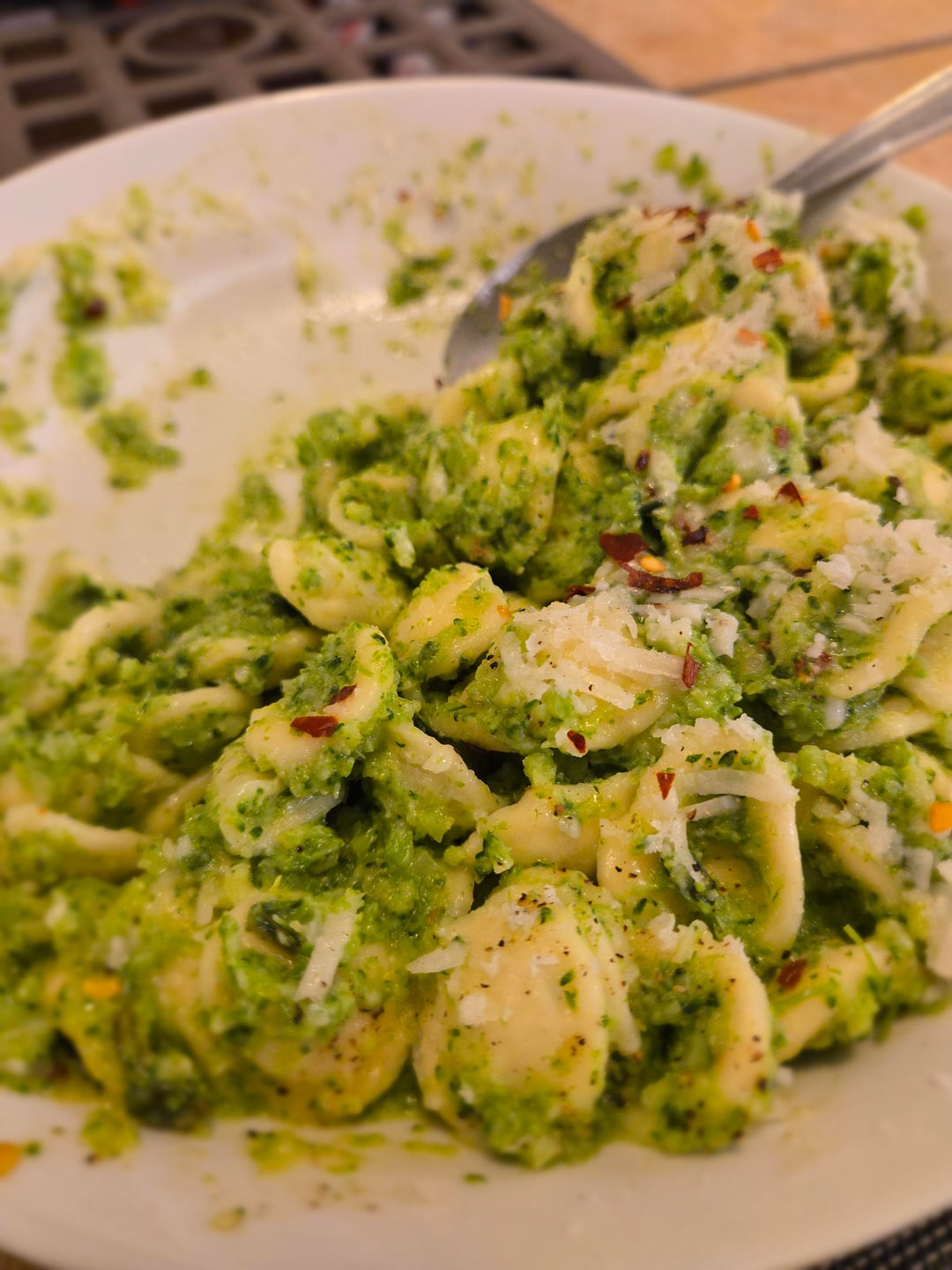 Plate, and top with rest of the grated pec and some more chili flakes on top for some colour and to have those 🇮🇹 colours all visible at the top and enjoy.