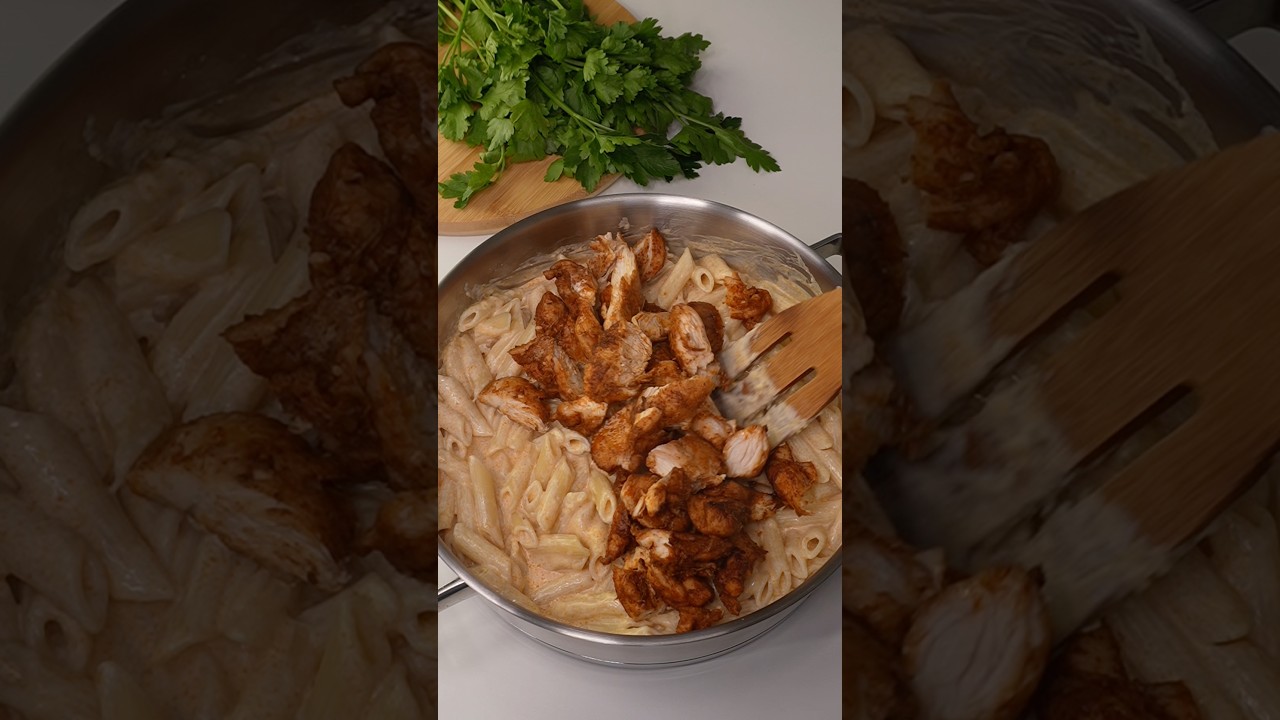 Then add the cooked macaroni, Parmesan cheese, the chicken, and about ½ teaspoon of salt. Mix everything well until fully combined and creamy. Serve warm.