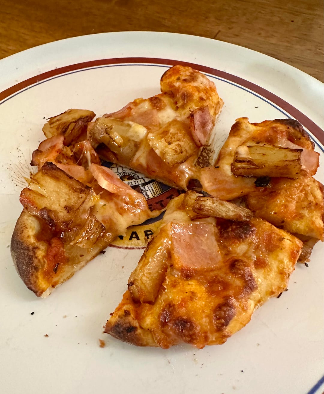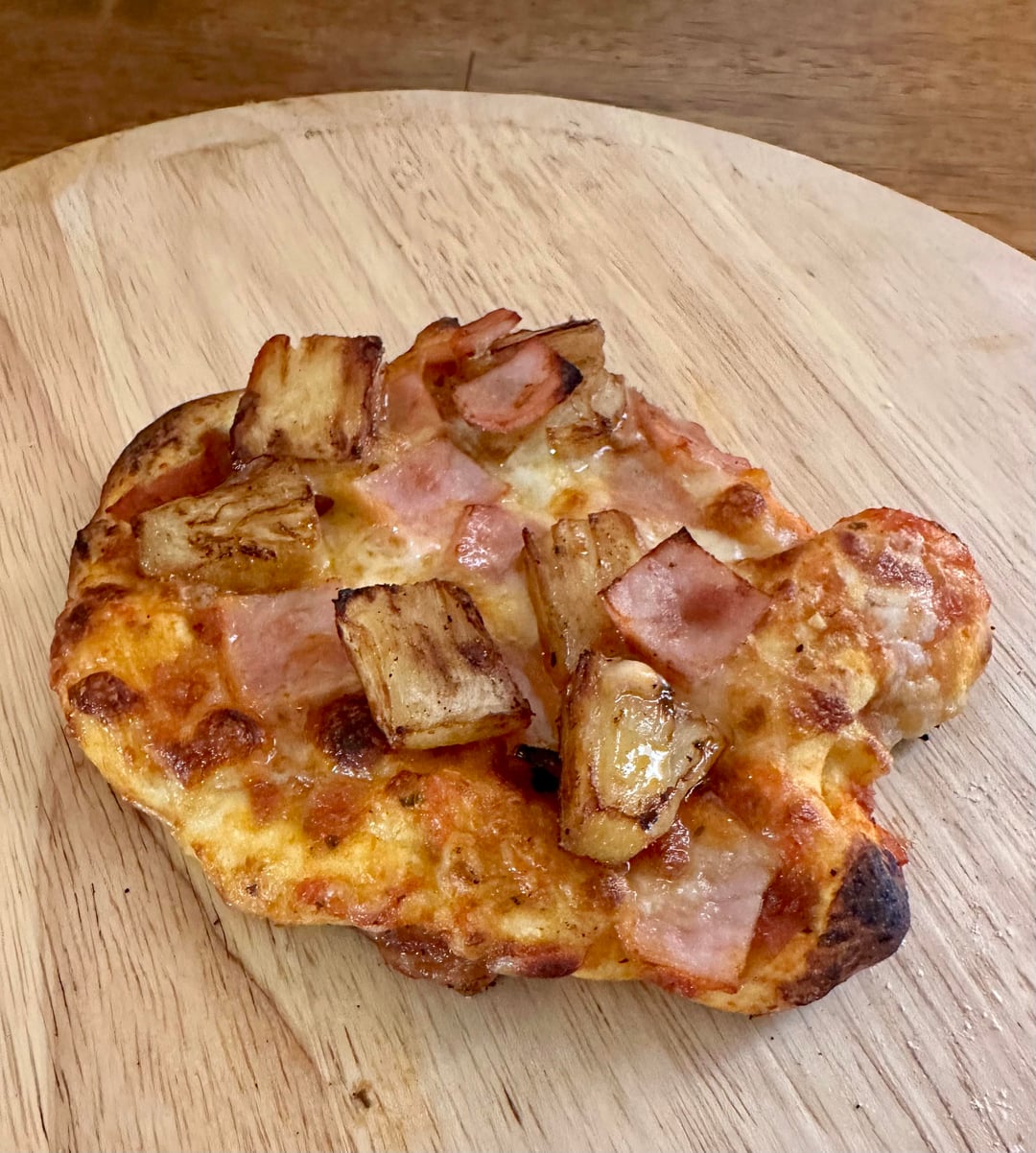 This pizza was hard to slide off. So it crinkled a bit and made a thicker dough than I like. Any suggestions on how to make a pineapple pizza with a thin crust? I’m guessing this was too heavy and wet and that’s why it wouldn’t slide easily off the pizza board and into the oven.