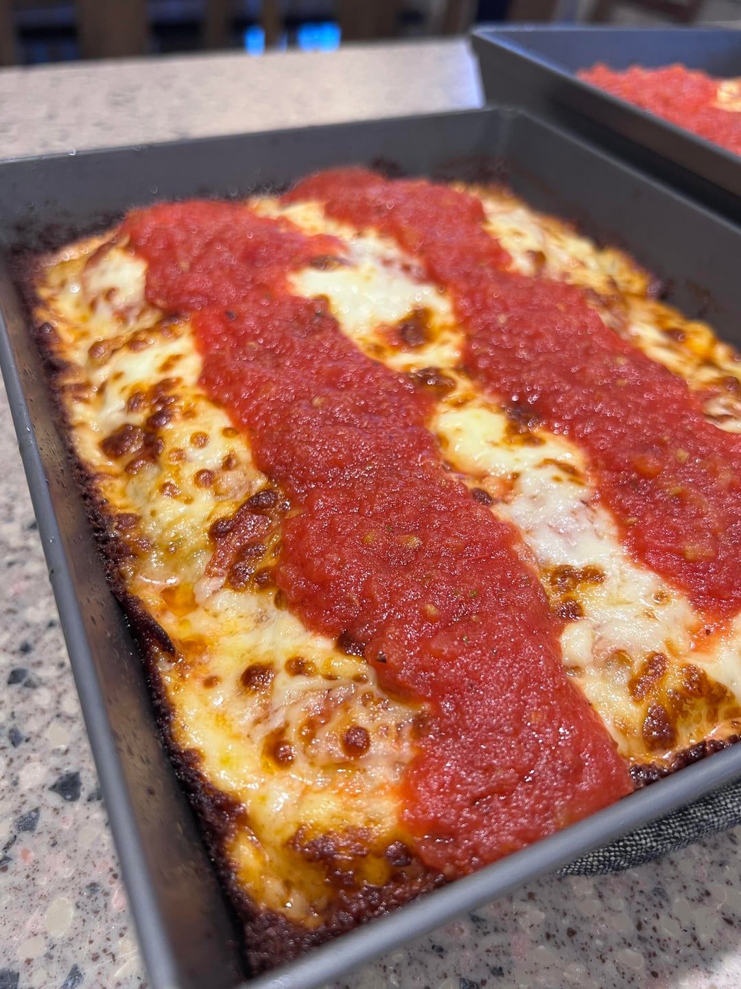 Detroit style is a winner because it’s delicious when fresh and like 99% as delicious when reheated.