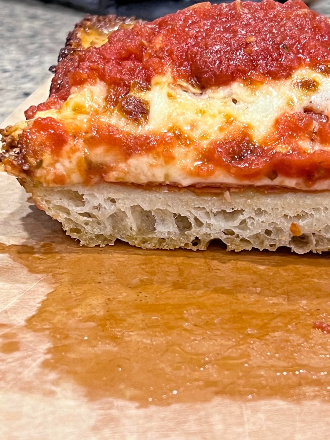 Pizza has been my outlet to maintain my sanity. First Neapolitan, then NY and now I thought I’d attempt a Detroit. Very happy with how it turned out.