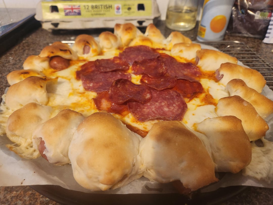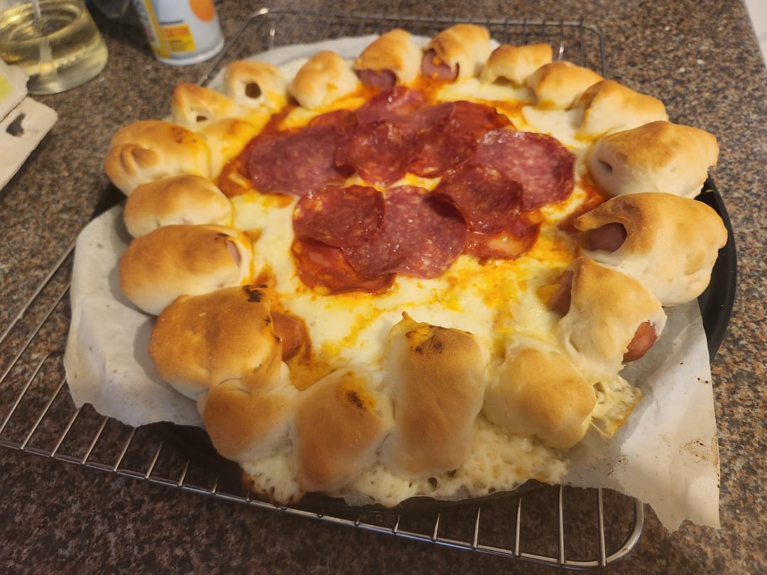 So back around the 2010s Pizza Hut went the stoner route and started making all kinds of weird and interesting pizzas. From pretzel crust to garlic knot to it's greatest creation, the hot dog crust pizza. It was a golden age!