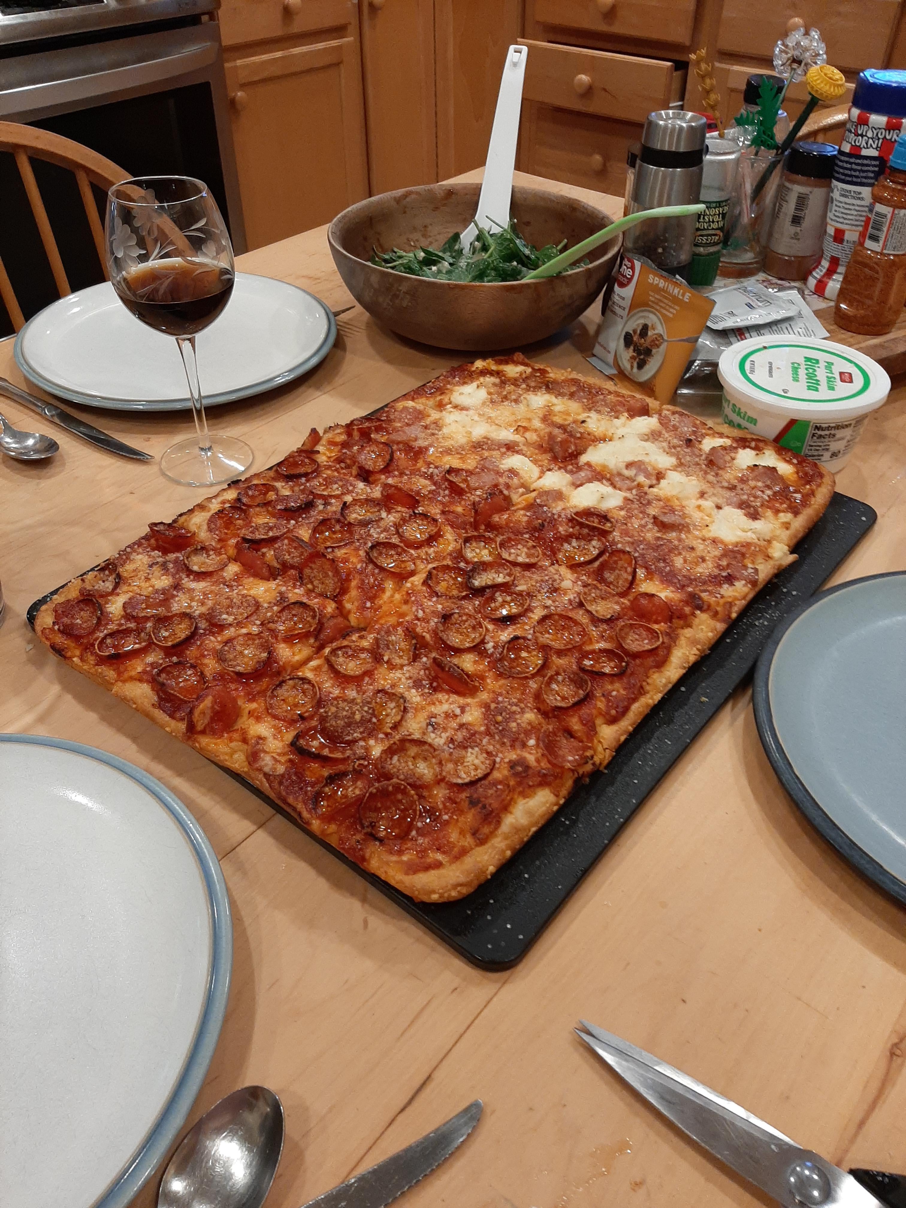 I was pleased. I think I'll look for a good whole milk deli mozz to get even slices. And switch to quarter (9×13) pans because getting the whole 13×19 out of pan gets a little sketchy.