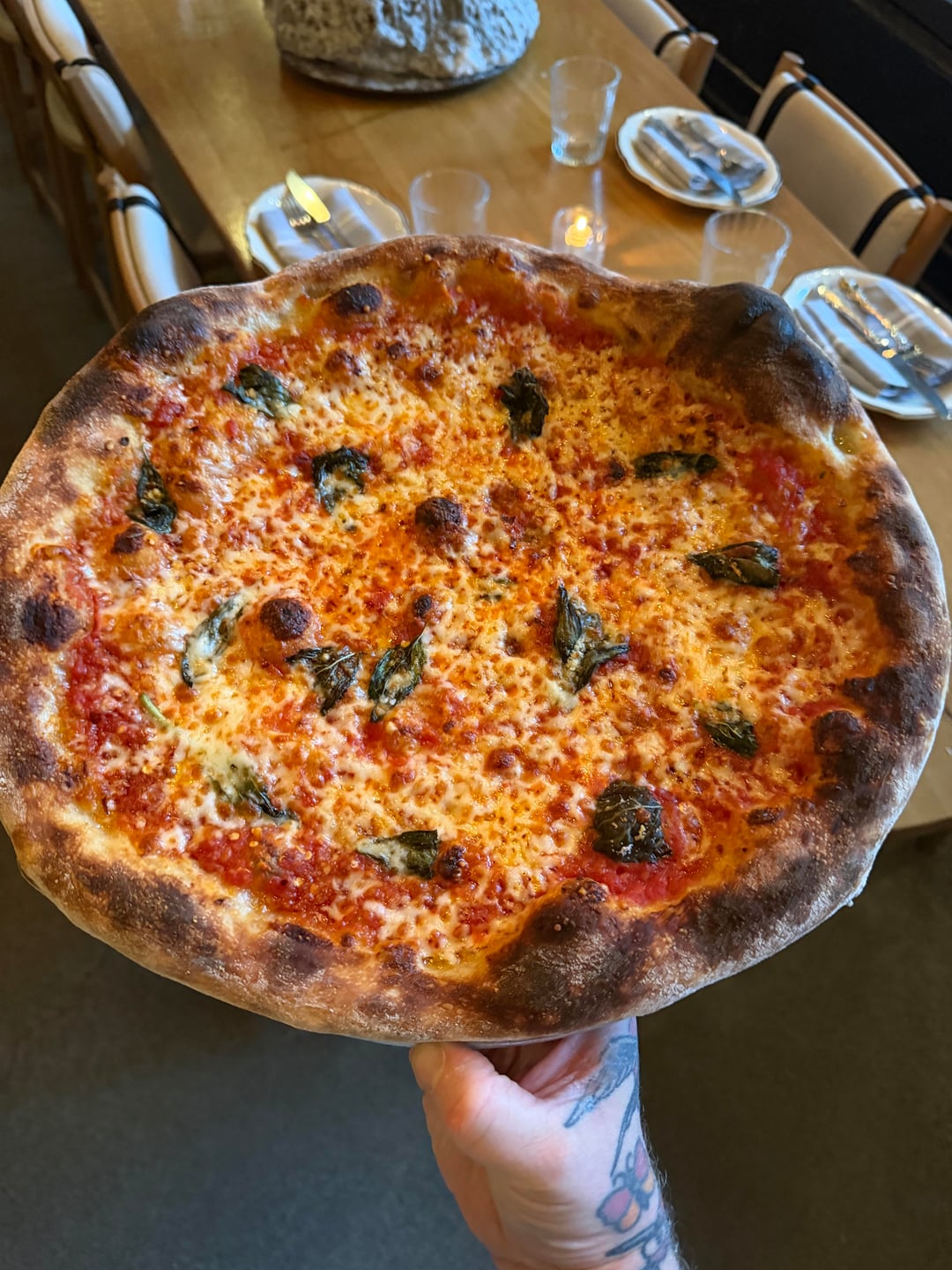 Dough is 67% hydration with 20% of the flour pre fermented, and a 50/50 Italian to American flour ratio
