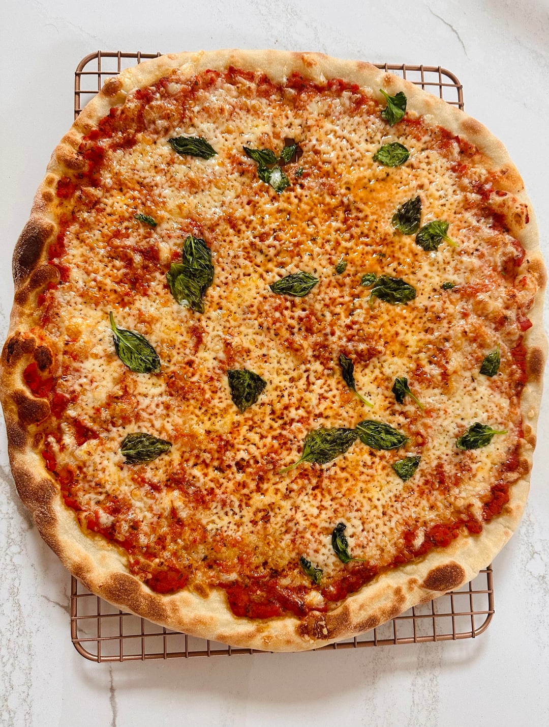 Nothing crazy but stoked I can just whip this up at home, for lunch. 63% hydration; 3 days in the fridge; steel @ 525; crushed tomatoes w/ salt, basil, oregano, a little sugar; crummy Walmart brand whole milk, low moisture cheese. Time to place an order with Wisconsin cheese mart for some Grande because the cheese is the one component that I feel like is lacking but not a lot of options around here for cheese.