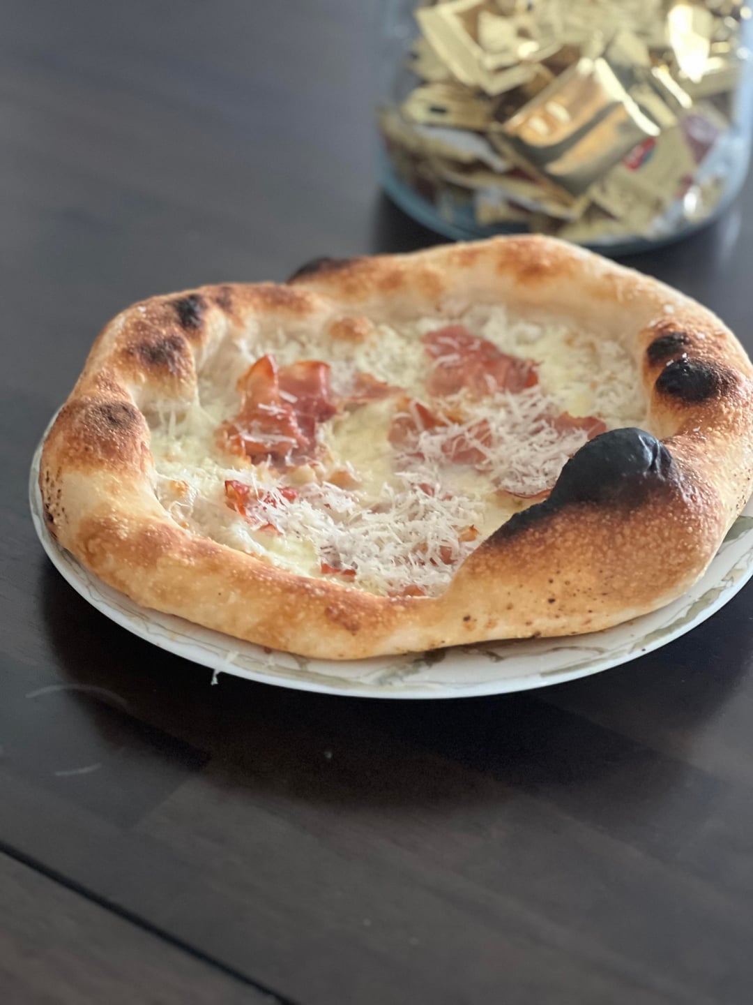 Haven’t made pizza in a bit, so made a couple of pies. This one is a white pie with burrata and prosciutto. Still trying to get more consistency with the crust, but getting there. Gotta get the shaping/forming a bit better to ensure that air bubbles get pushed into crust without bursting or clumping