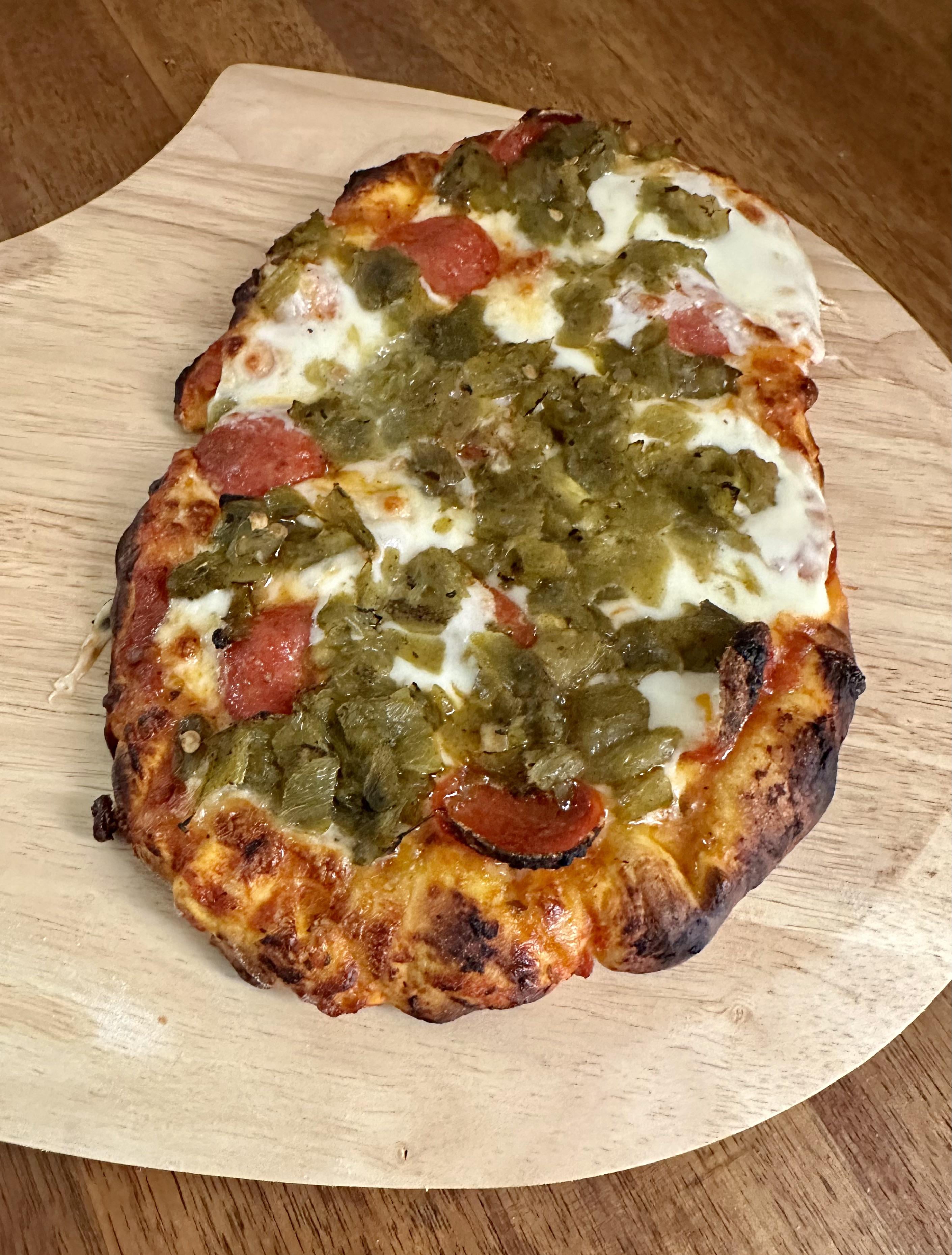 Made a bigger pizza today. Still need to work on getting it round. Lol