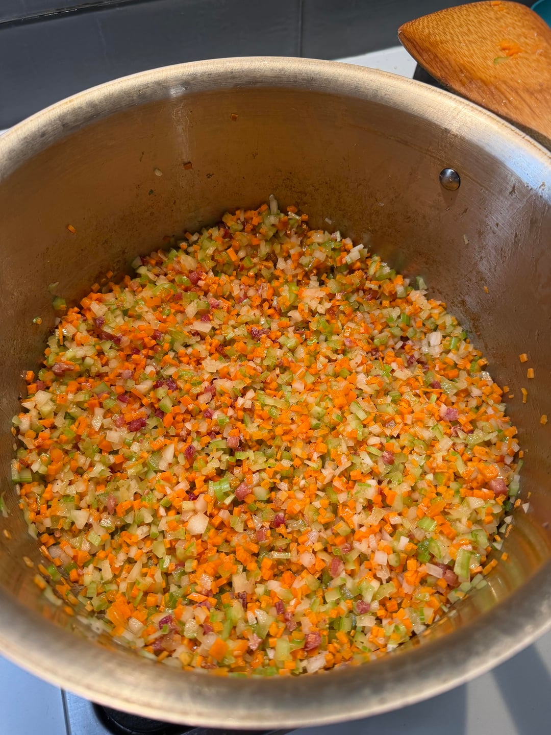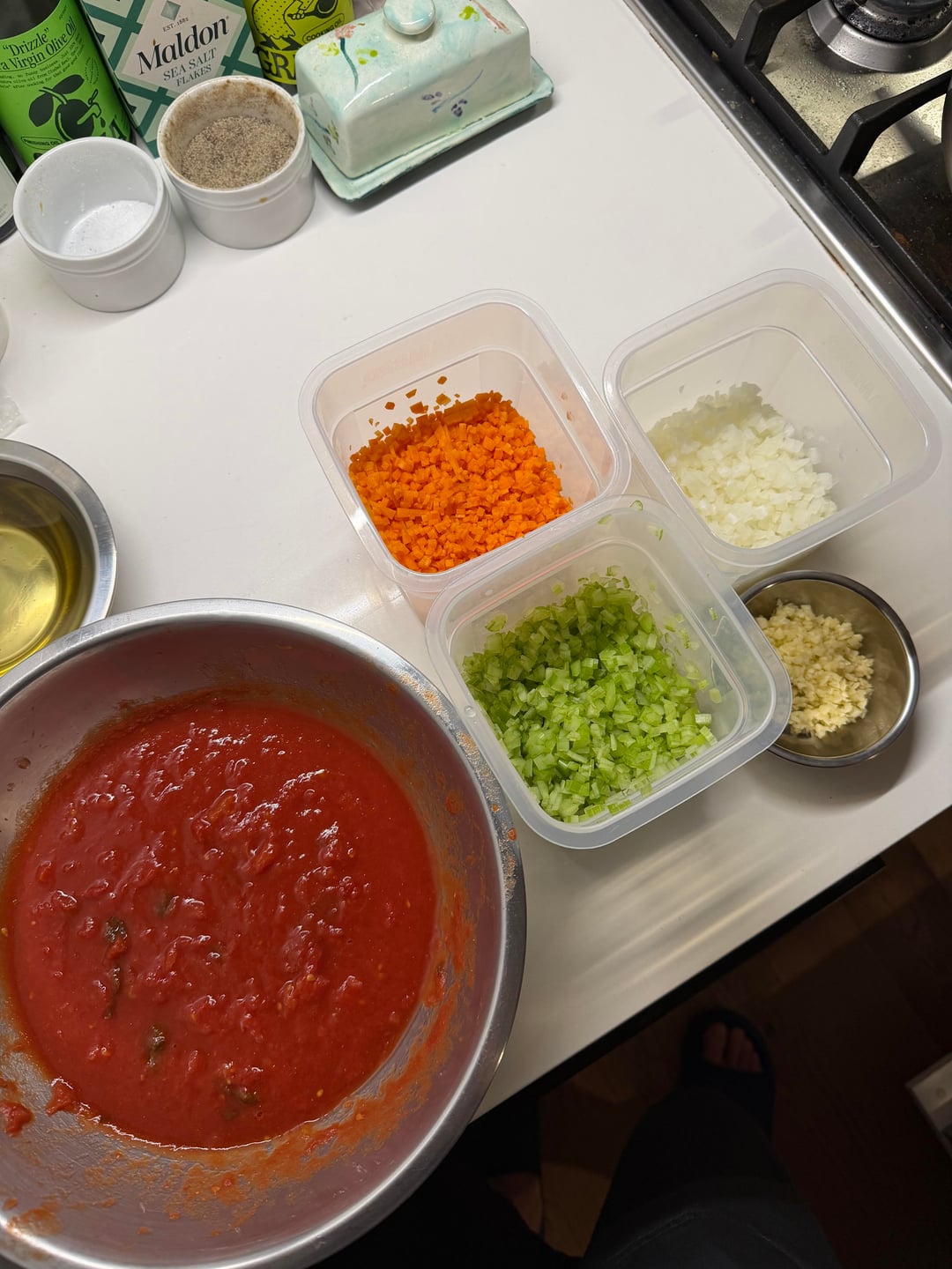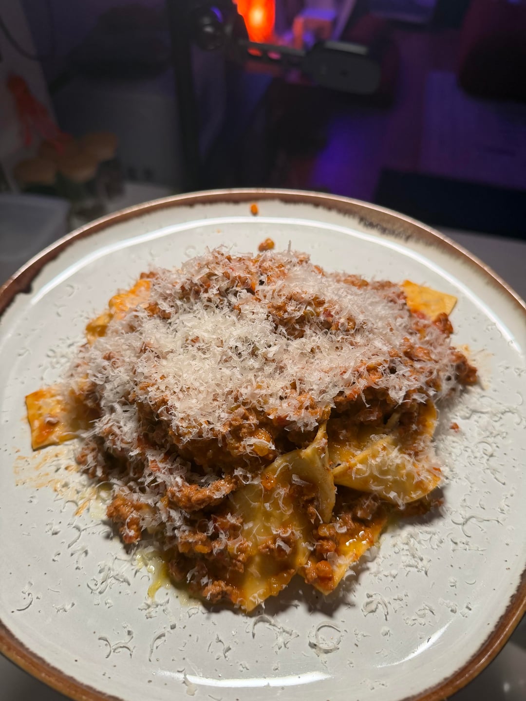 This is one of those recipes I’ve made so many times now that a recipe is not needed. Measure with my eyes and by taste and smell. I’m working on improving making pasta from scratch. I can post my pasta making process in future posts. I do trim the fat after letting it sit in the fridge overnight. I prefer to trim, add the fat back in so I control how much of it is in the sauce.