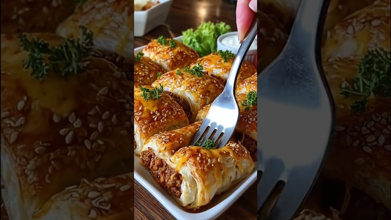 Cheesy Beef-Stuffed Puff Pastry Rolls