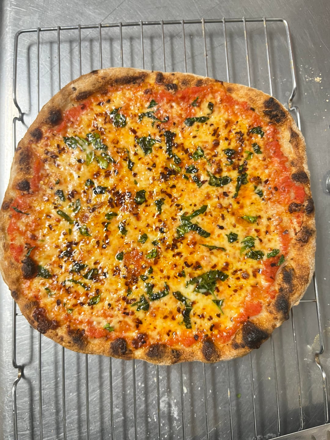 I intended to brush the dough with oil but forgot before launching. Would’ve taken it up a notch but oh well