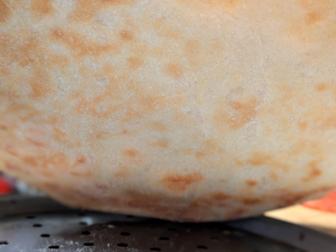 I can't seem to get the underneath to crisp up. Oven isn't great but we're trying (seems to max out at 240-250 Celsius (~480-500F) and I only have access to the perforated pizza trays). Grill is in a separate section of the oven and is broken on one side, so might not be able to use that if would have helped.