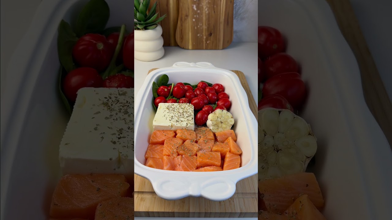 • Bake 20–25 minutes until salmon is cooked and feta is soft.