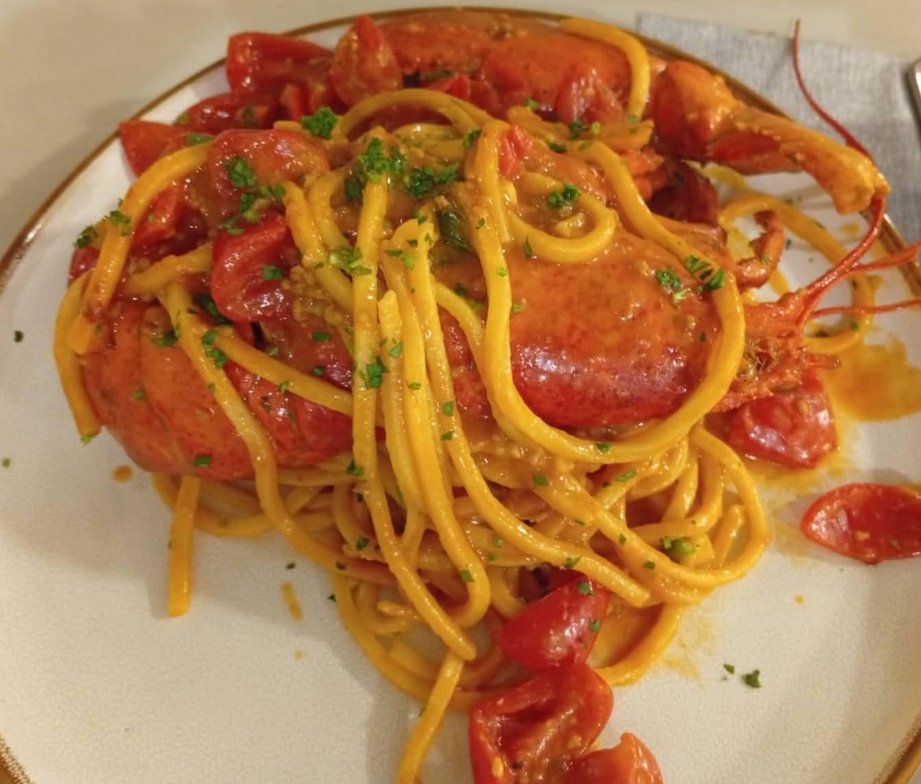 Feeling-Buy2558 1 hour ago Recipe: I sautรฉed fresh cherry tomatoes with garlic and olive oil, then added the lobster to cook in its juices. Tossed everything with al dente tonnarelli and a sprinkle of fresh parsley. Simple and delicious! [OC]