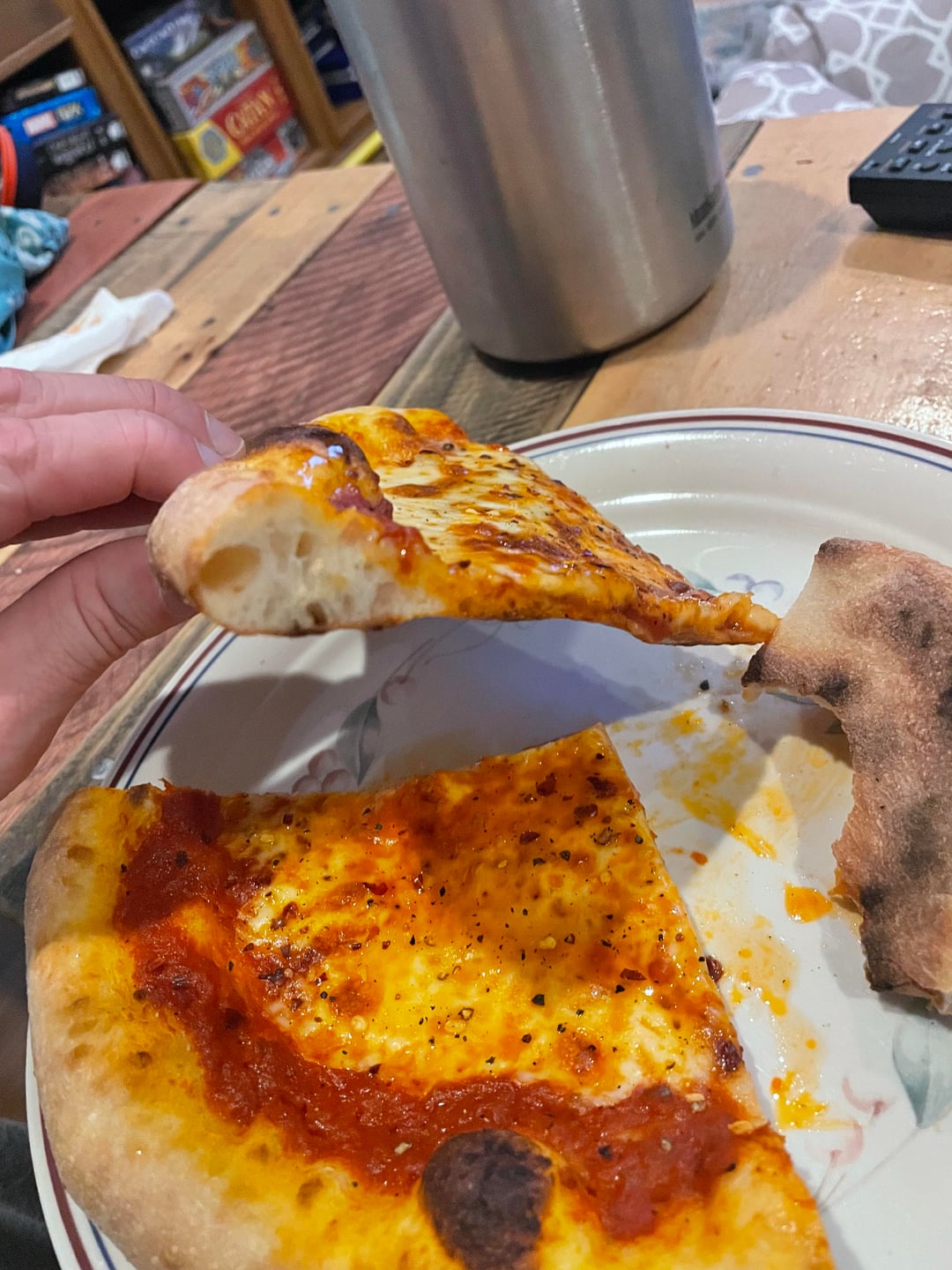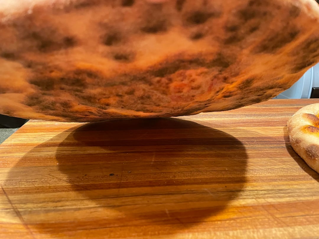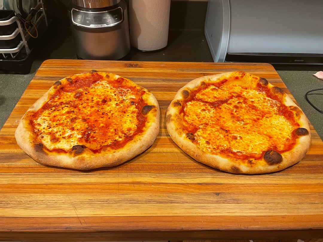 Two quick cheese pizzas made with three day cold ferment bread flour dough at 62% hydration. Made in home oven on steel at 550 F with convection.by SkinnyPete16 NORMAL OVENpizzaWrite A CommentYou must be logged in to post a comment.
