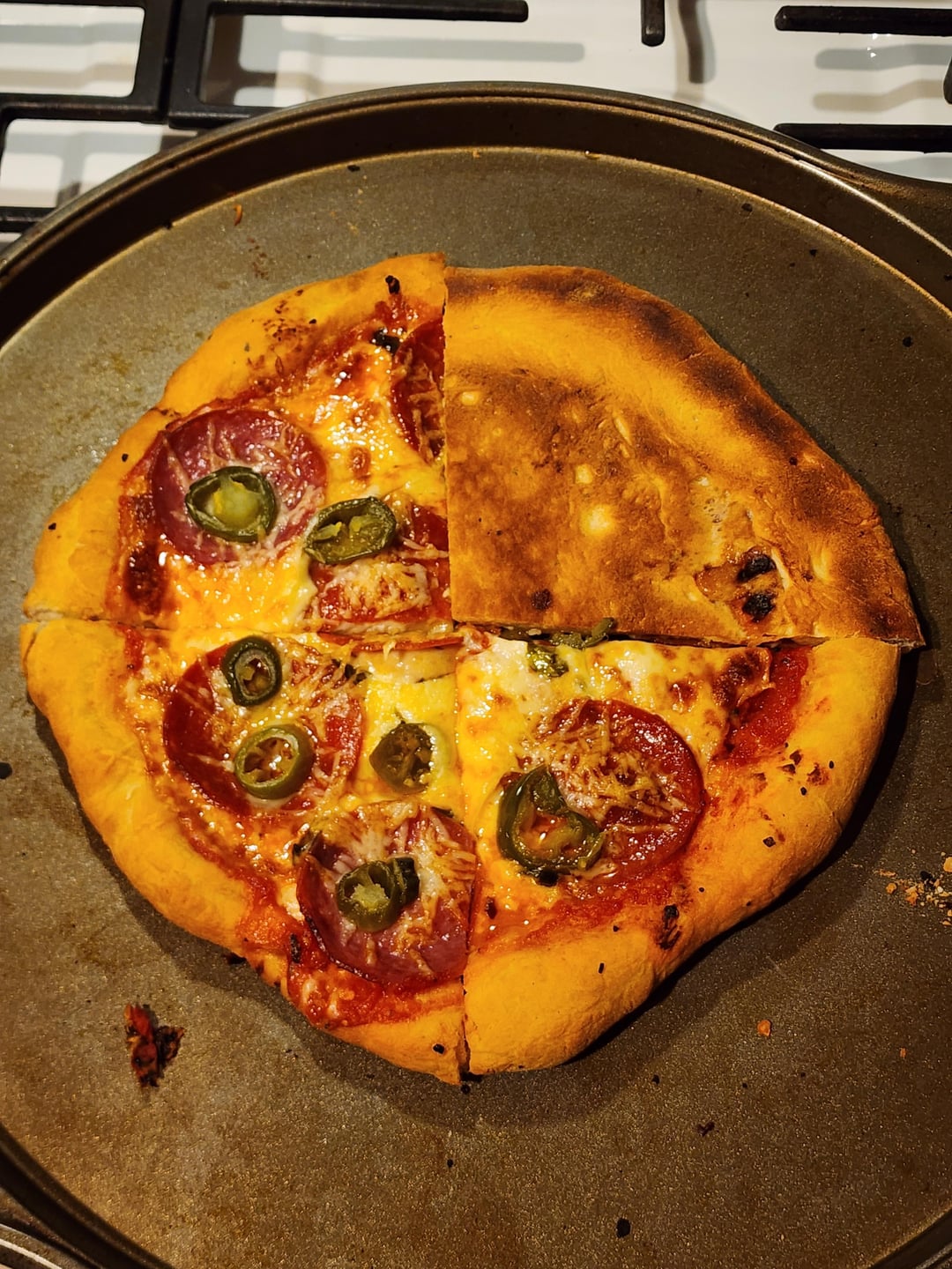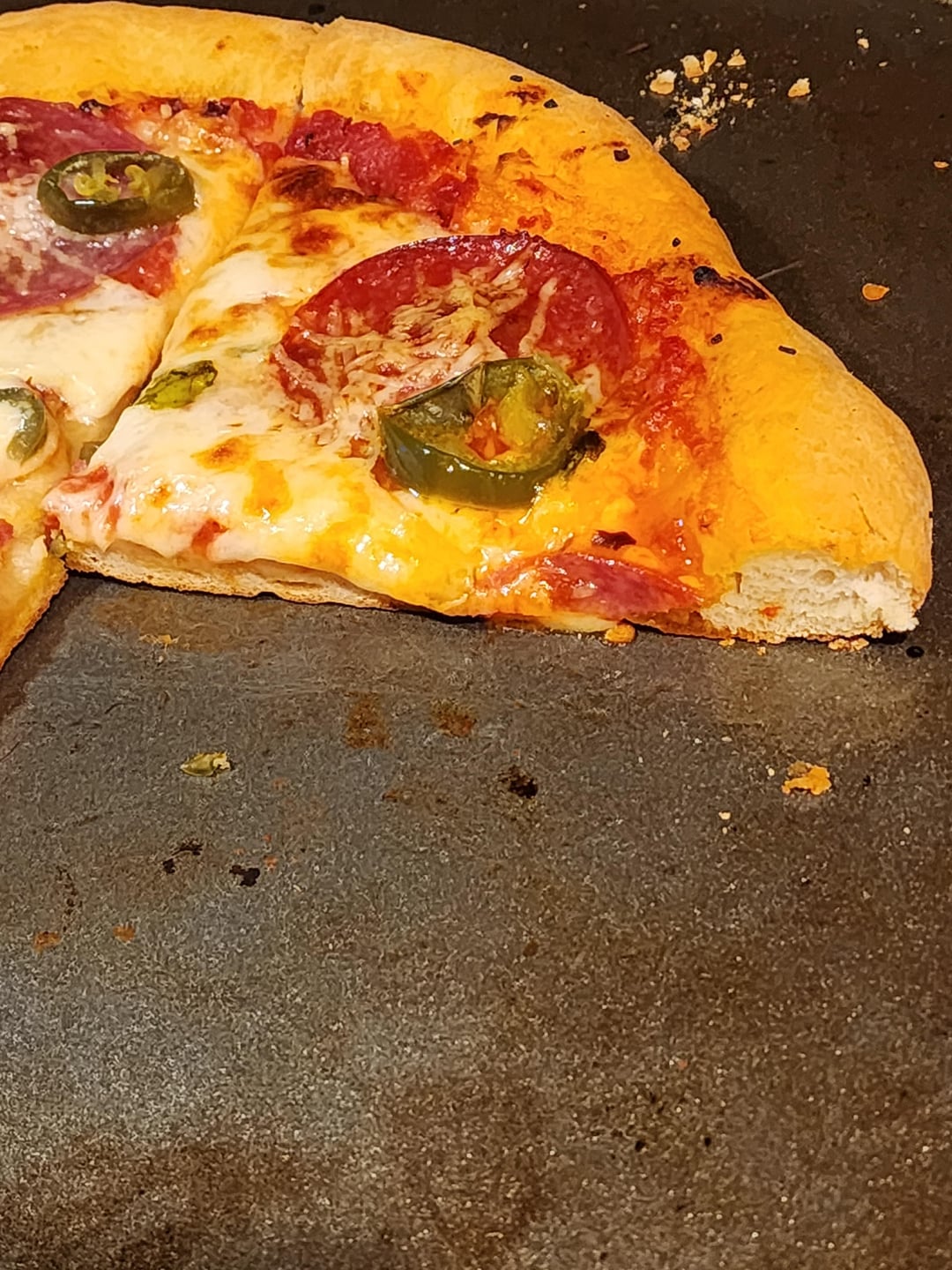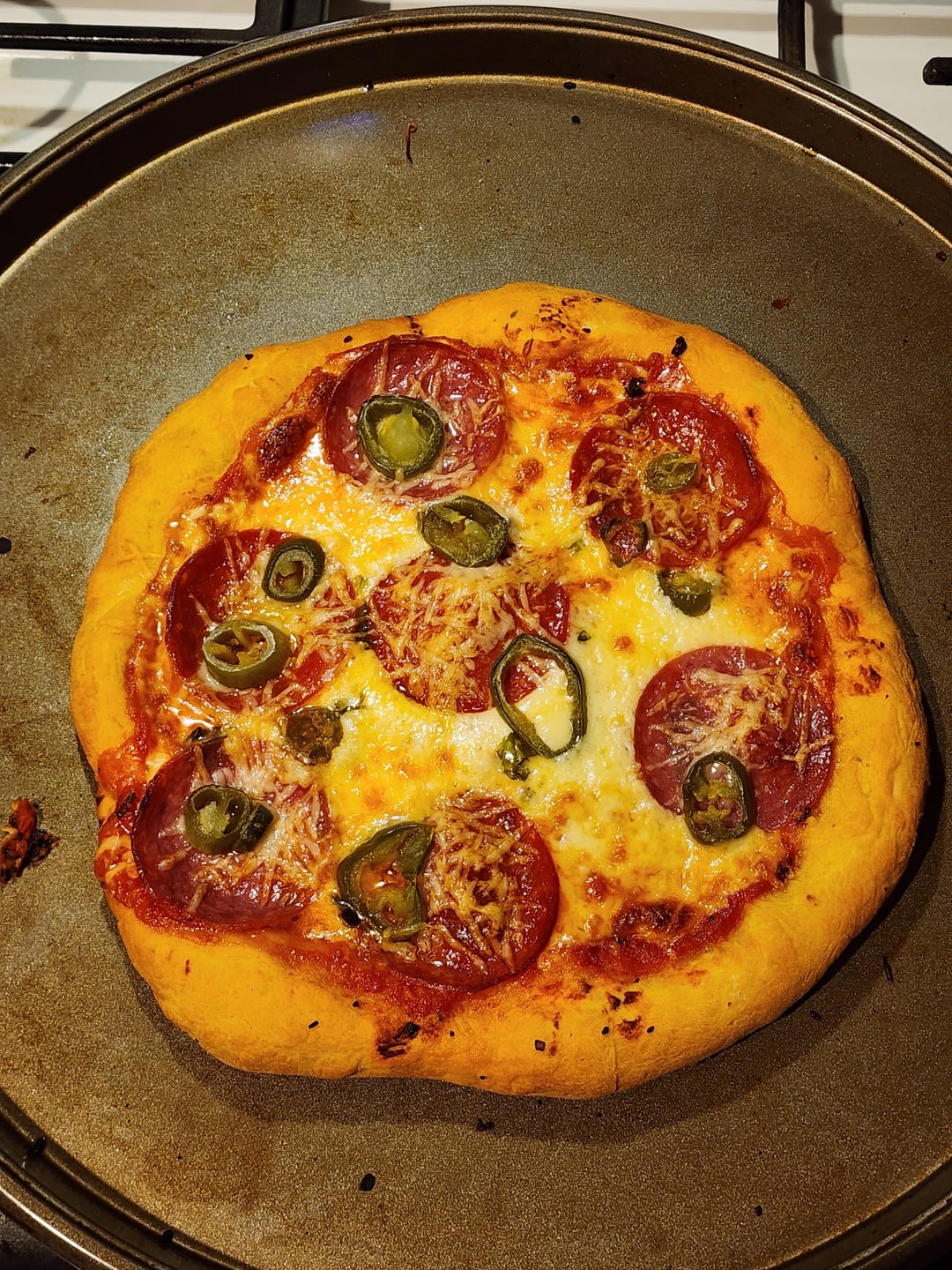 2nd pie featured pepperoni, salami, pickled sliced jalapeÃąos and was baked to a chewy bite and crunchy crust.