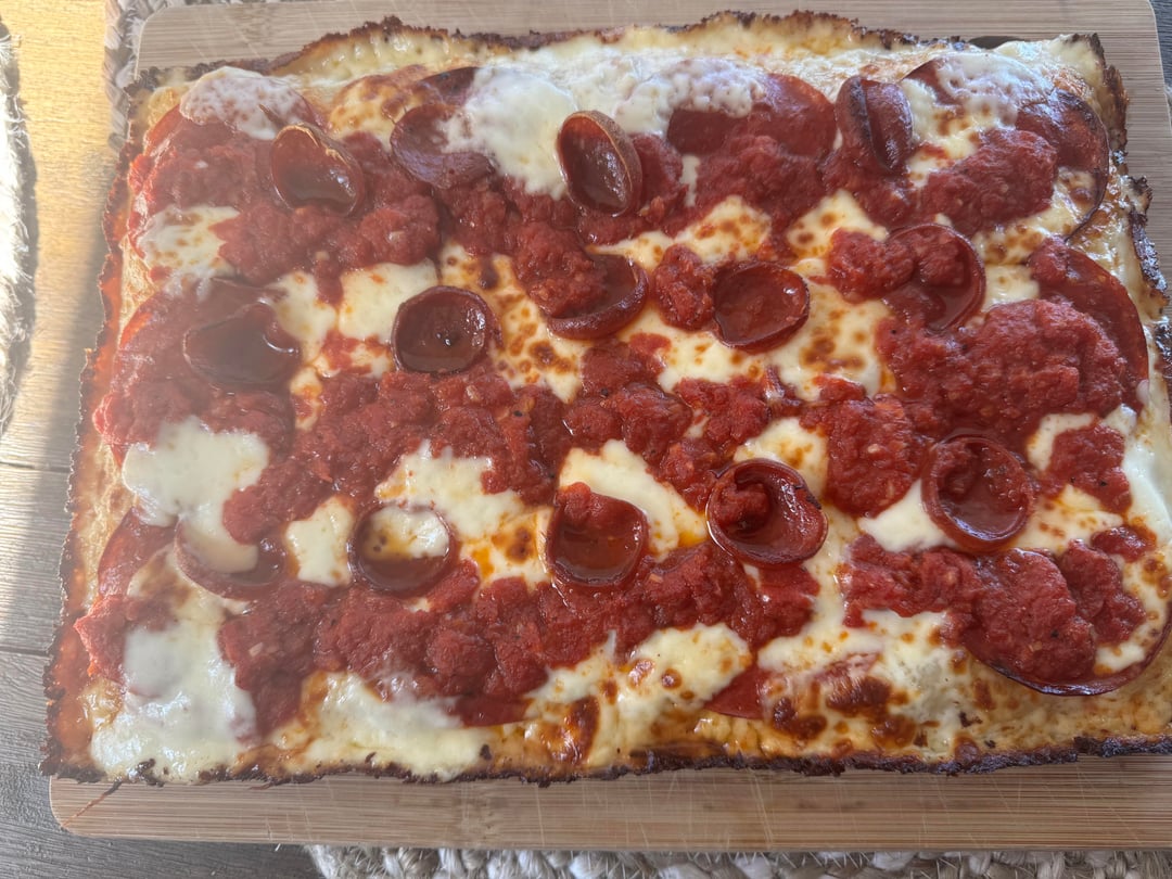 Anyone have topping suggestions for the next one? I’ve just been doing pepperoni, sauce, and cheese for these first few.