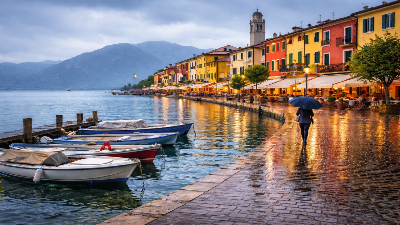 This immersive walking tour allows you to experience Bardolino exactly as it feels in real life — calm, authentic, and peaceful. The sound of light rain, the gentle movement of the lake, and the reflections on the promenade create a soothing travel experience.