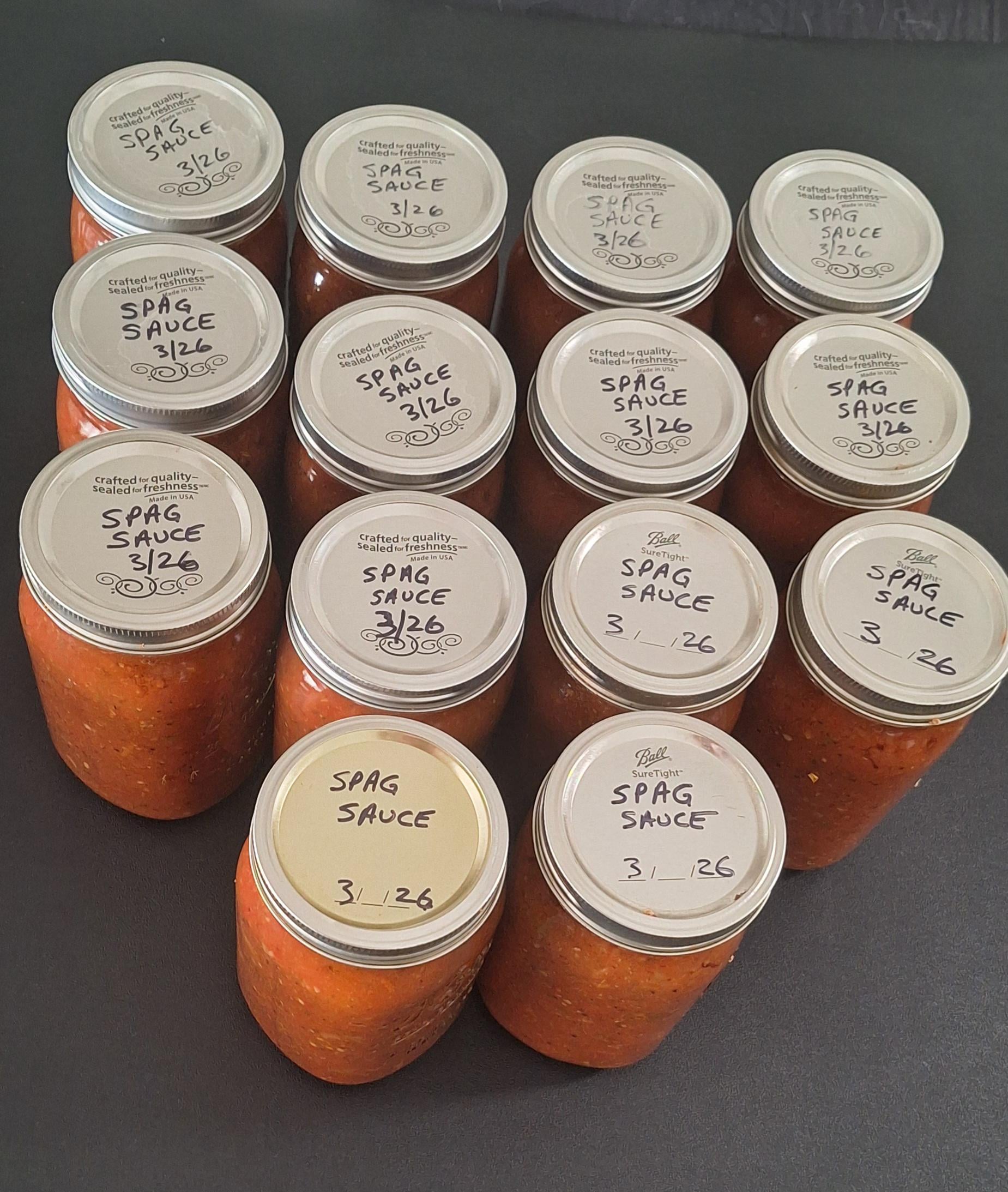 14 quarts of Spaghetti Sauce canned. There was another one but the bottle broke in the canner. All the tomatoes I had in the freezer are now used up. 😀