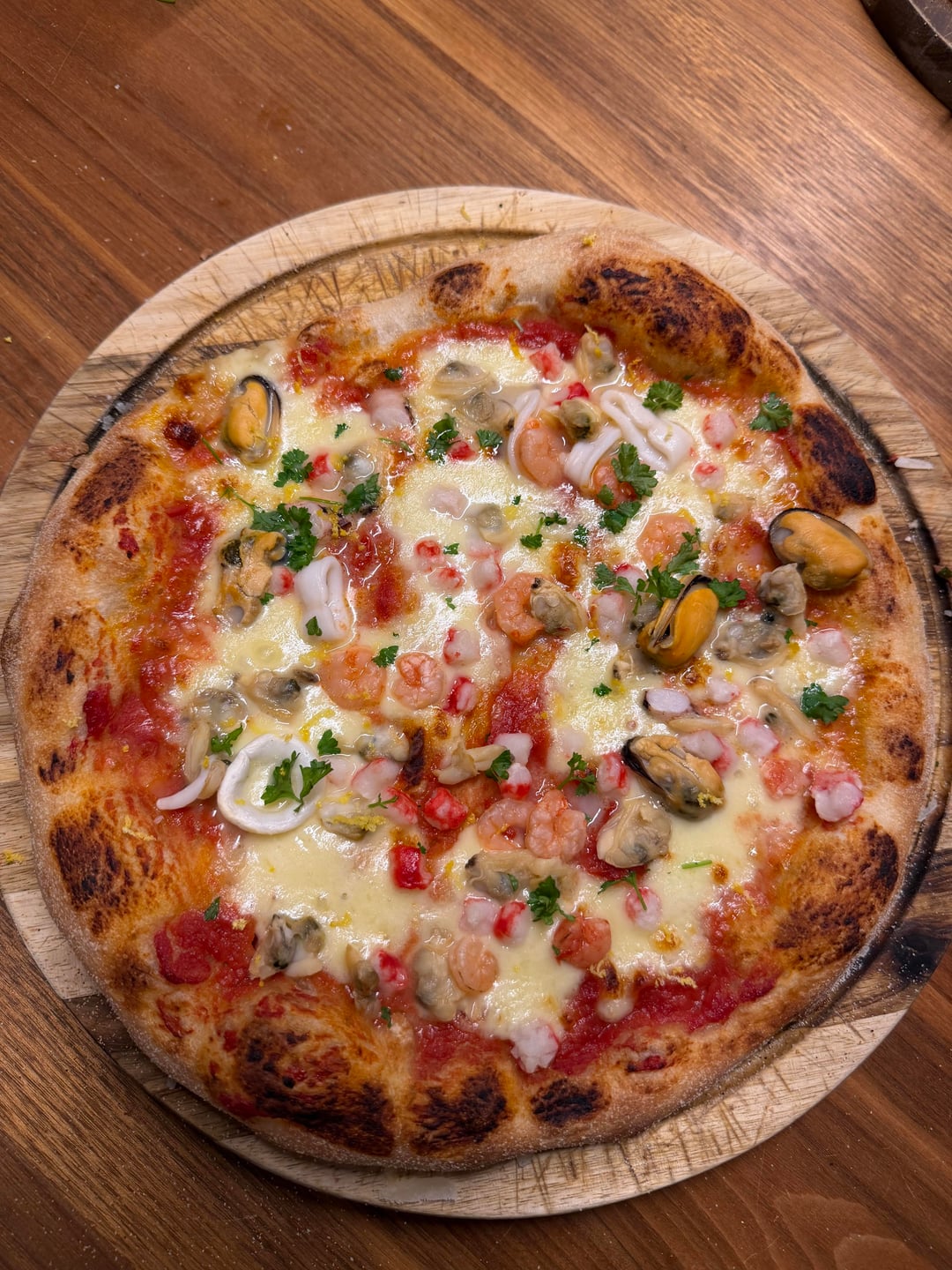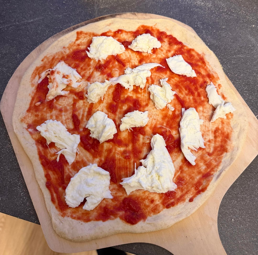 275 °C // 527 F in normal oven. Buffalo mozzarella, lemon zest, garlic, olive oil, parsley. Spelt flour as an experiment (worked like a charm due to 12% protein).