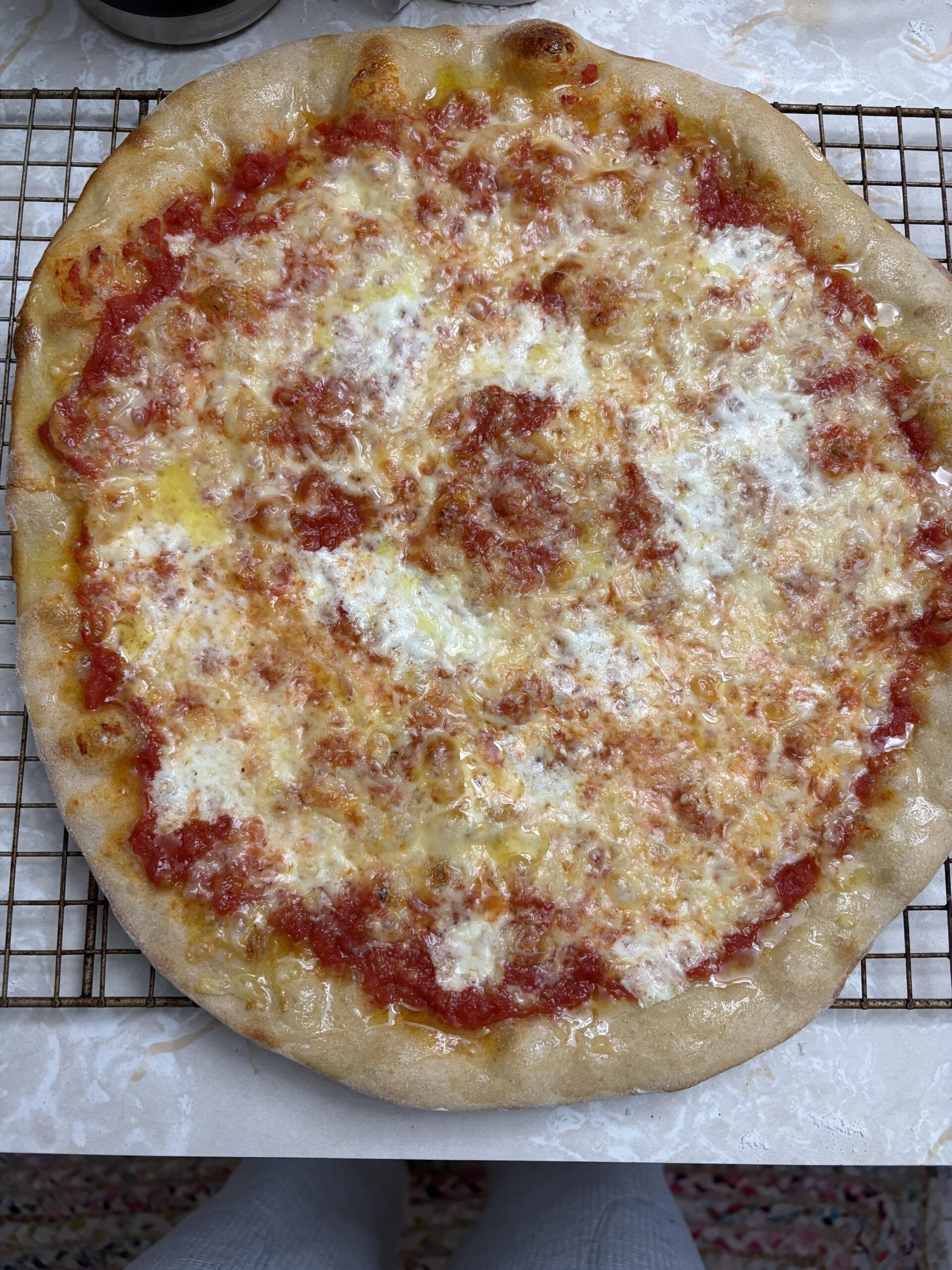I made my first pie ever today! Used Joshua Weissman’s NY-style dough recipe. Baked on a pizza stone in a pizza oven at 550 degrees for 10 mins. I would love to use a steel in my regular oven, but my oven is shit and can’t get it hot enough. Excited to keep working on it!