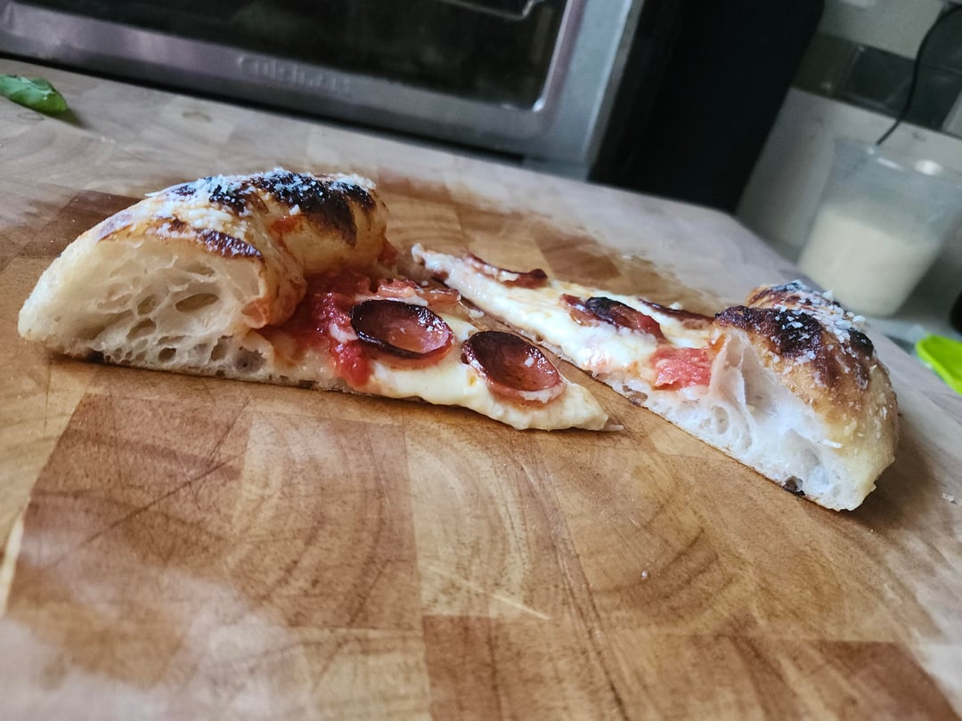 Nuvola Super with 5% Caputo whole wheat70% hydration15% inoculation3% saltCold proofed for 48 hours, room temp for 6Baked in the Gourmia pizza oven on biscotto stone.by chetdesmondbluerose indoor pizza ovenpizza 1 Comment badbitchherodotus 2 hours ago Holy hell…That looks amazing. Excellent work.Write A CommentYou must be logged in to post a comment.